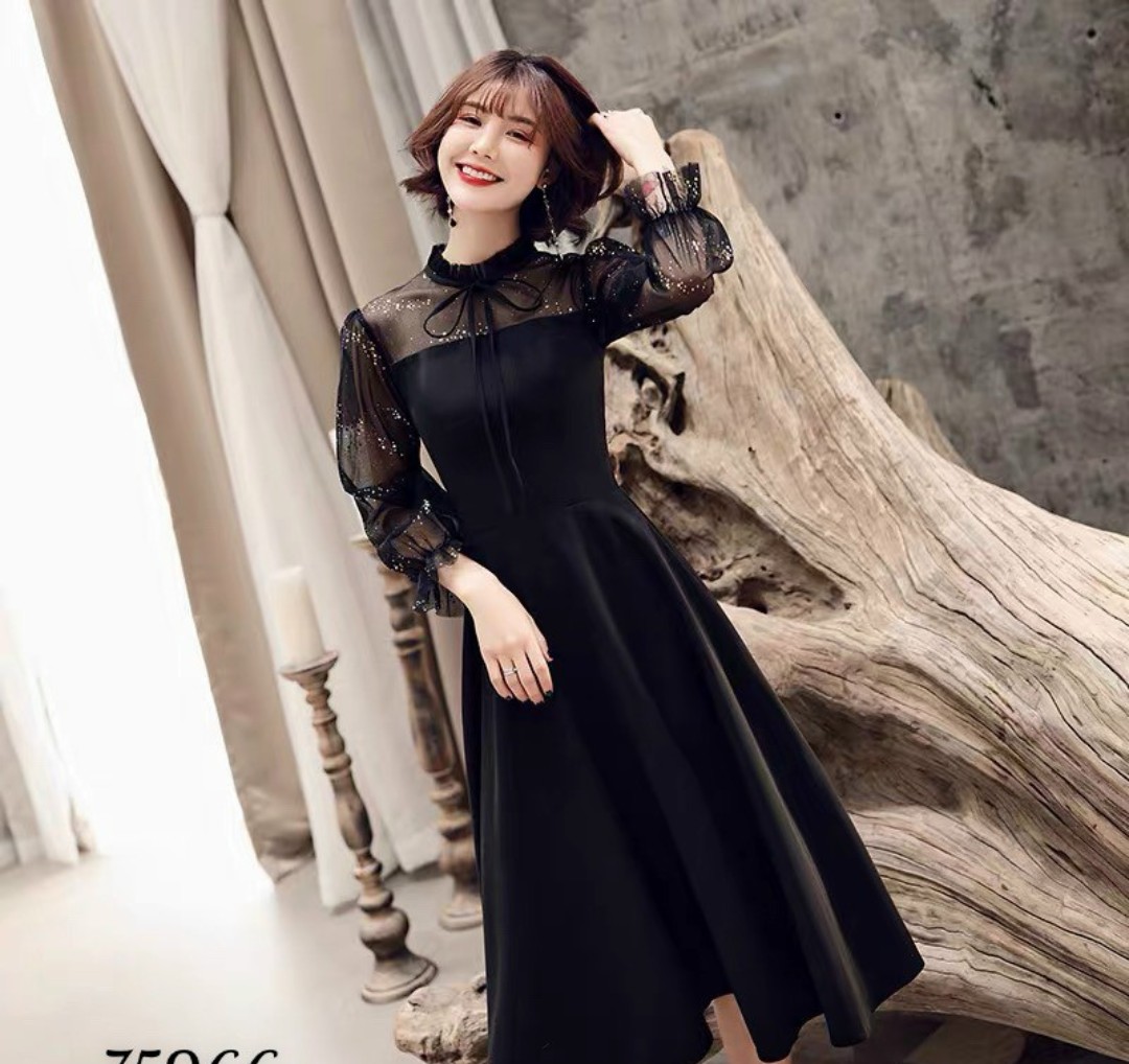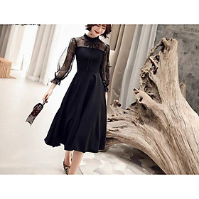 ✨VÁY ĐẦM XÒE MÀU ĐEN TAY PHỐI LƯỚI THANH LỊCH DUYÊN DÁNG ĐỦ SIZE TỪ 40-70KG