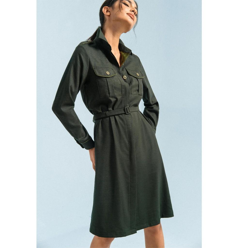 Váy sơ mi dáng dài trơn vải đũi xước nhật thắt eo thanh lịch sản phẩm thiết kế