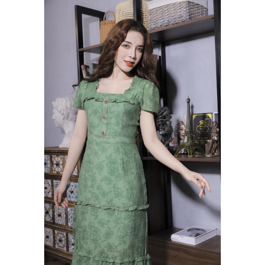✨Váy Nữ Cao Cấp Màu Xanh Xếp Ly 23V028 Pi Style
