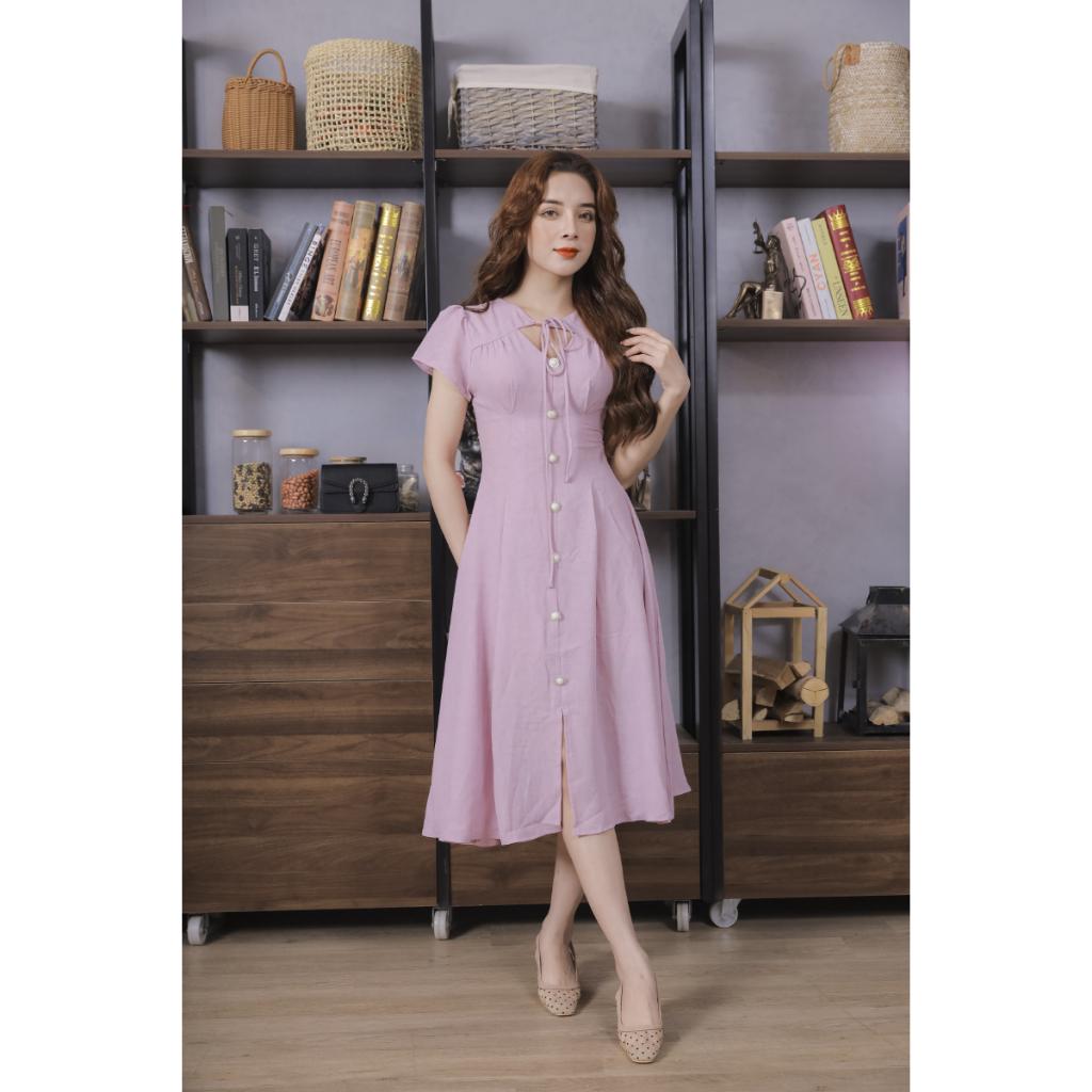 ✨Váy Nữ Vải Xước Màu Tím Cao Cấp 23V045 Pi Style