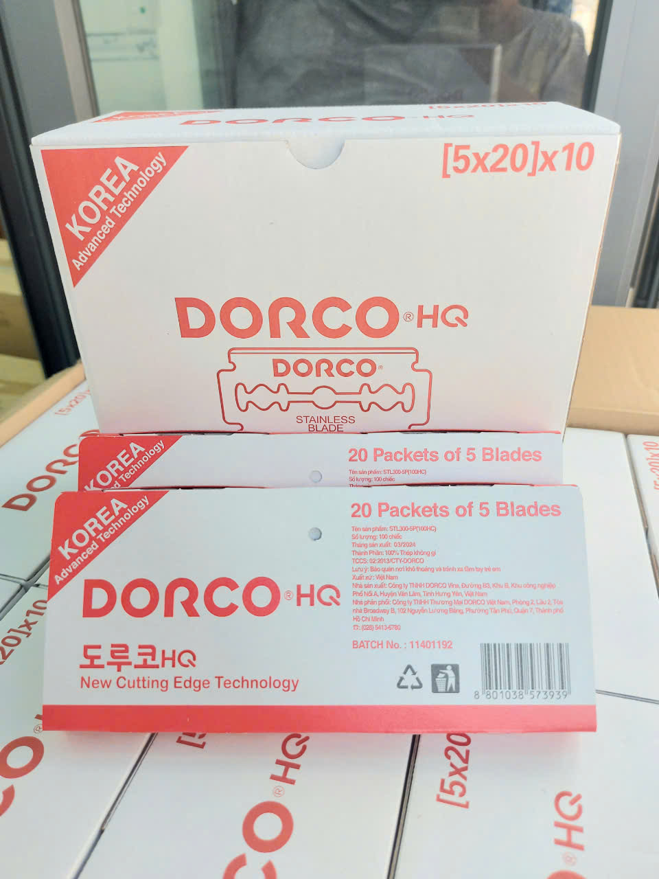 Vỉ 100 hộp lưỡi lam Dorco HQ màu đỏ ( Dao lam Dorco Đỏ) là sản phẩm lưỡi dao Dorco chính hãng Hàn Quốc Sản phẩm có độ mỏng lưỡi dao là 0.075mm giúp lưỡi