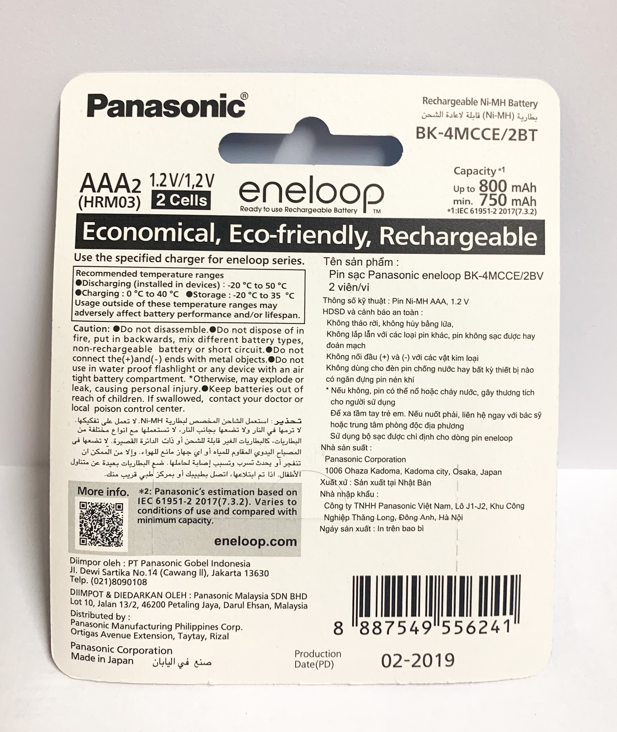 Vỉ 2 Pin Sạc AAA Eneloop 800mAh 2100 lần sạc BK-4MCCE – Panasonic Việt Nam