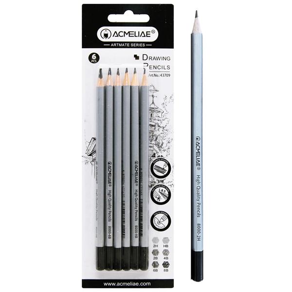 Vỉ 6 Bút Chì Mỹ Thuật 2H-8B - Acmeliae 43709