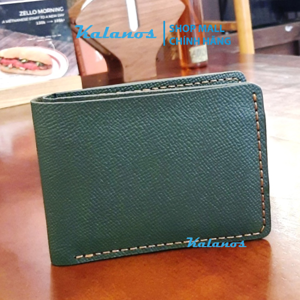 Kalanos - KBN840-Xanhl – Bóp/ Ví nam da bò handmade cao cấp, Ví tiền đẹp chất lượng màu xanh lá, chuẩn hàng xuất khẩu, sang trọng, handmade may tay, có hộp đẹp làm quà tặng.