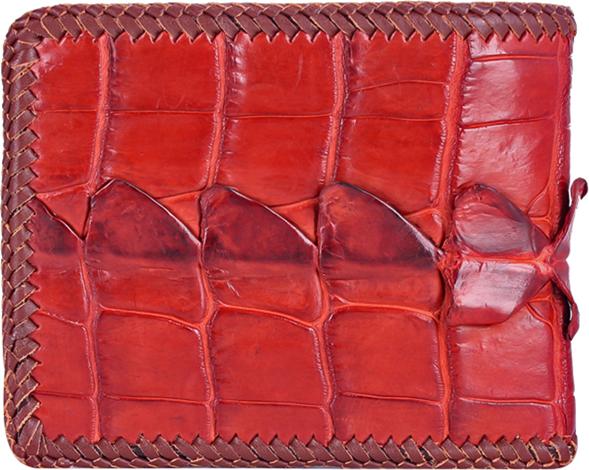 Ví Da Cá Sấu Ngang 1 Mặt Đan Viền Nâu Đỏ VD0408