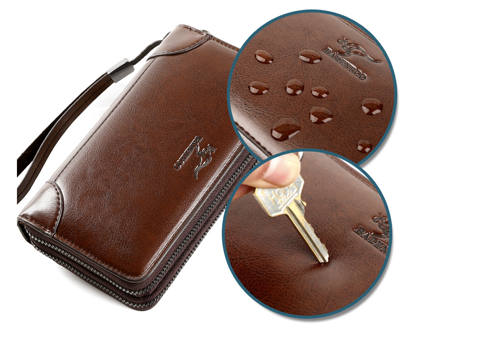 Ví nam cầm tay da bò cao cấp sang trọng, Clutch nam nhiều ngăn để thẻ và các giấy tờ điện thoại có d