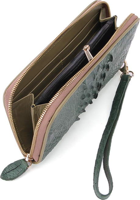 ✨Ví nữ da cá sấu Huy Hoàng 1 khóa gai màu xanh rêu HT3223