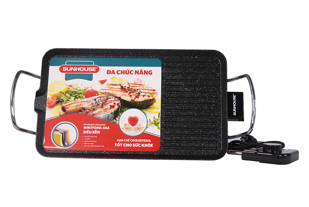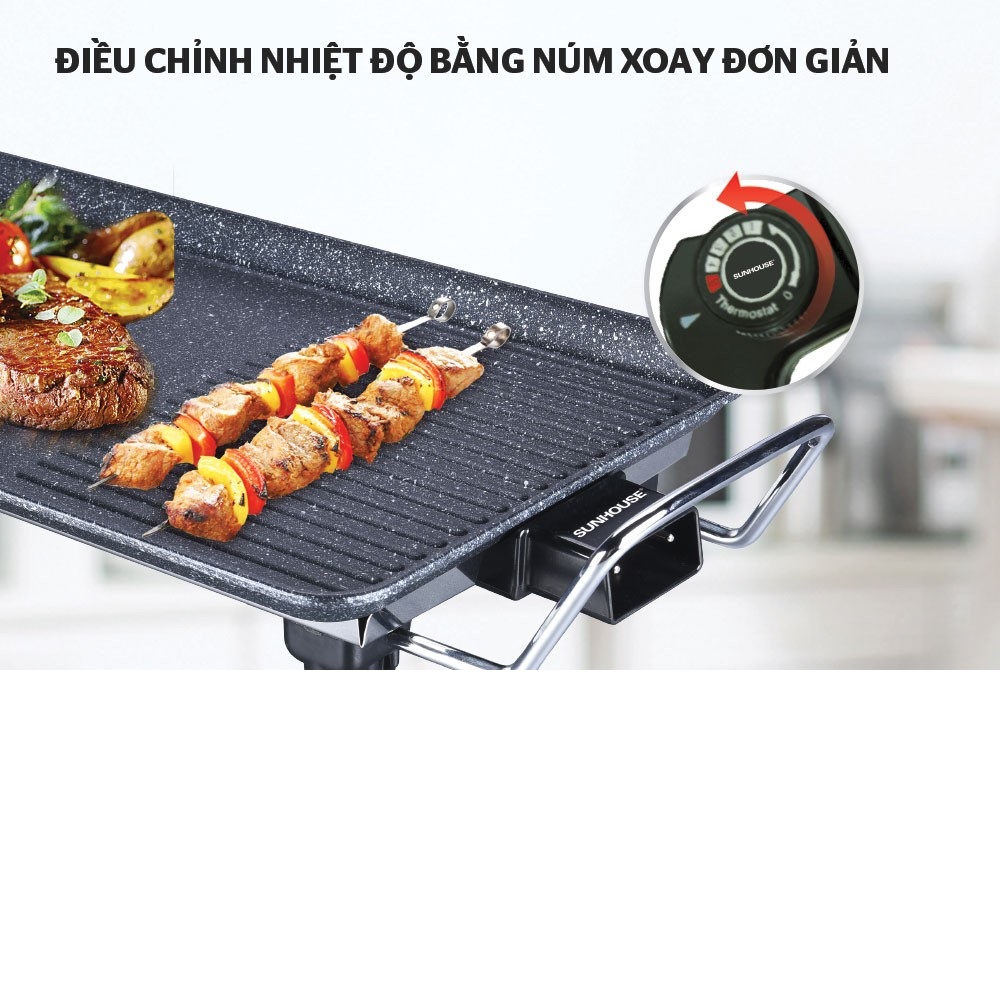 Bếp nướng điện Sunhouse SHD4600- Hàng chính hãng Đặc điểm nổi bật: - Bề mặt phủ chống dính đá hoa cương Whitford (USA) siêu bền kháng khuẩn - Tay cầm cách nhiệt - Bộ điều