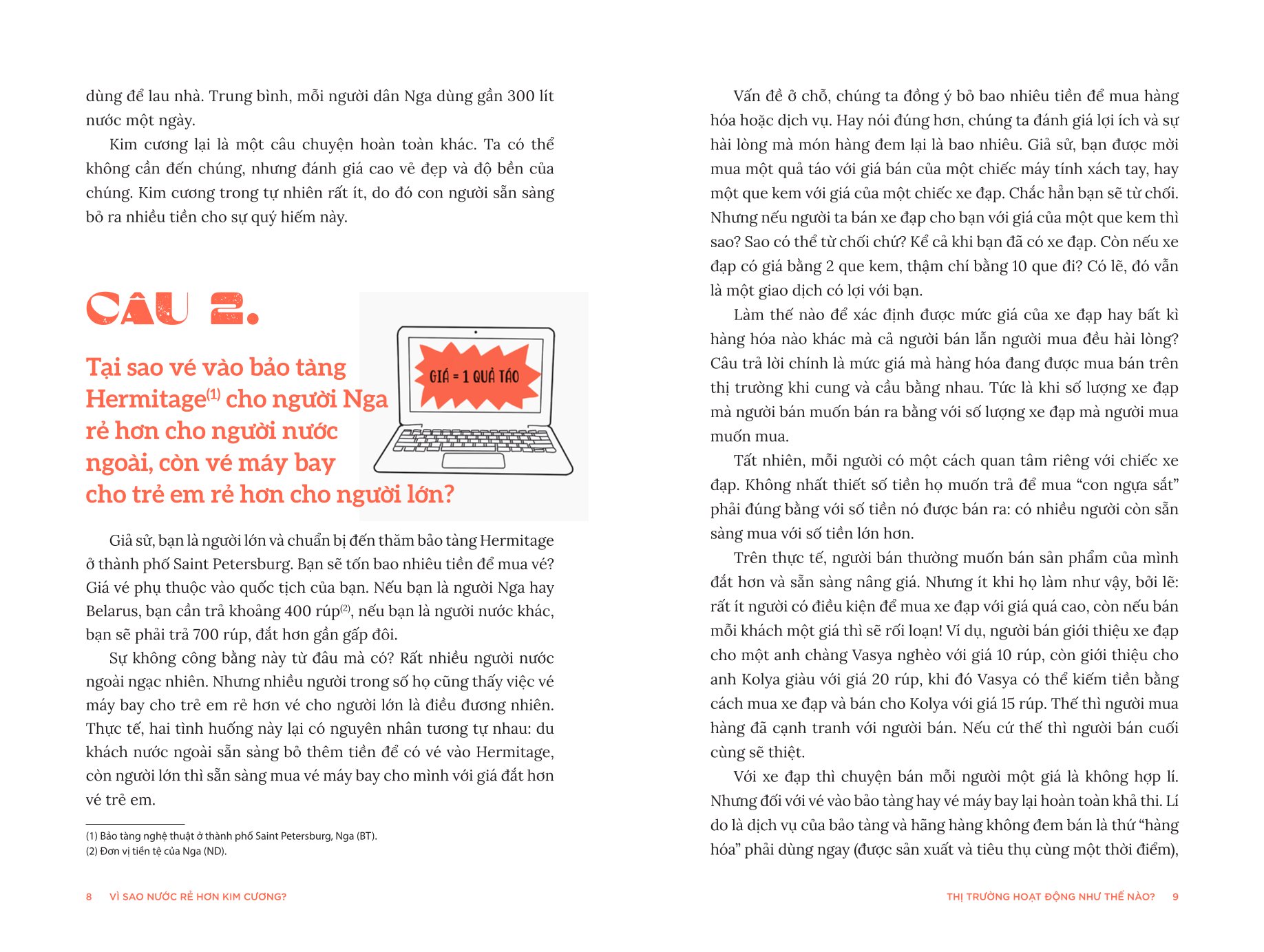 Đã bao giờ bạn tự hỏi: Tại sao dâu tây thường đắt hơn vào mùa đông, hay giá cả khi đi biển nghỉ mát lại đắt hơn vào mùa hè? Tại sao chúng ta phải xếp hàng dài trong viện bảo tàng hoặc siêu thị? Tại sao nhiều lúc chúng ta được đi tiêm miễn phí, nhưng đi chữa răng lại phải bỏ tiền? Chúng ta cần đóng thuế để làm gì và đóng cho ai?... Rất nhiều thắc mắc trong cuộc sống hằng ngày đều liên quan đến quy luật kinh tế, nhưng đôi khi chúng ta gần như không hề nhận ra. Vì Sao Nước Rẻ Hơn Kim Cương? - 48 Câu Hỏi “Xóa Mù” Kinh Tế Học chính là cuốn sách giải đáp những quy luật đó.