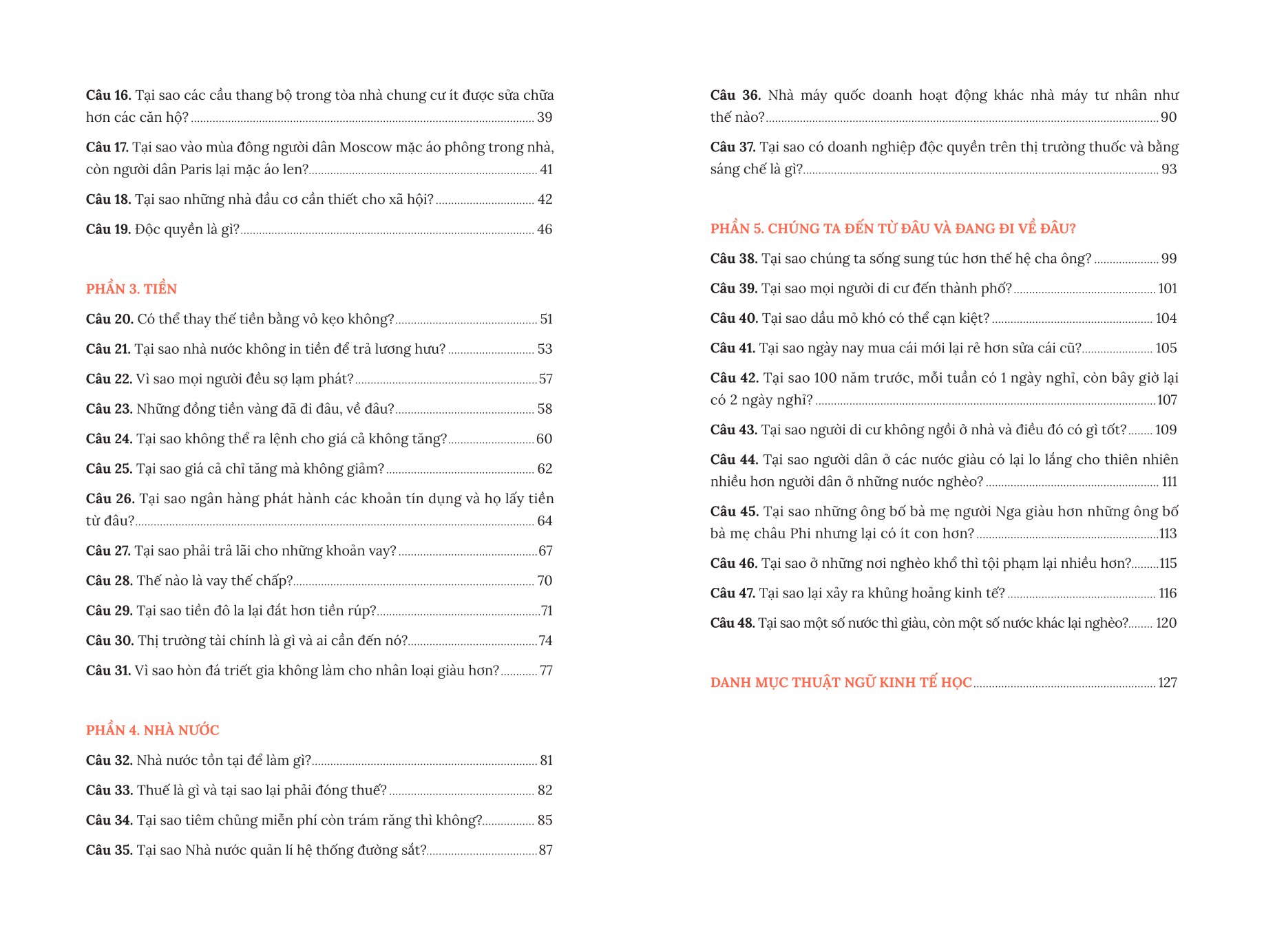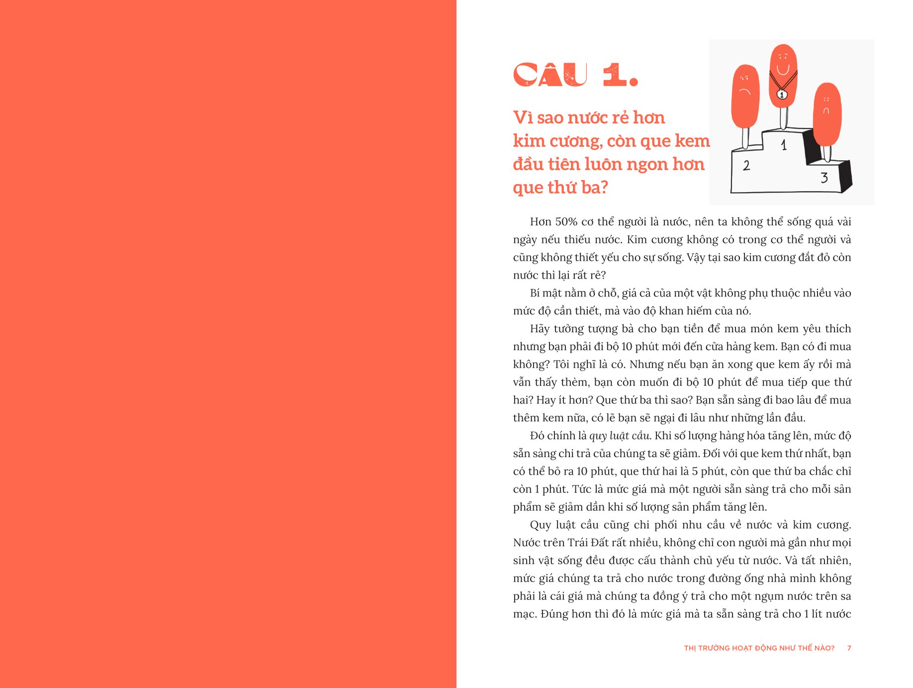 Theo hình thức hỏi đáp, cuốn sách này sẽ giúp bạn dễ dàng hiểu được nền kinh tế đang vận hành ra sao, dù bạn là thanh thiếu niên hay người trưởng thành, đang là một người tiêu dùng, nhân viên công ty, một nhà tự doanh theo kiểu truyền thống hay đang ấp ủ ý tưởng khởi nghiệp… Bạn sẽ thấy kinh tế học không hề khô khan hay chỉ là chuyện của các chuyên gia.