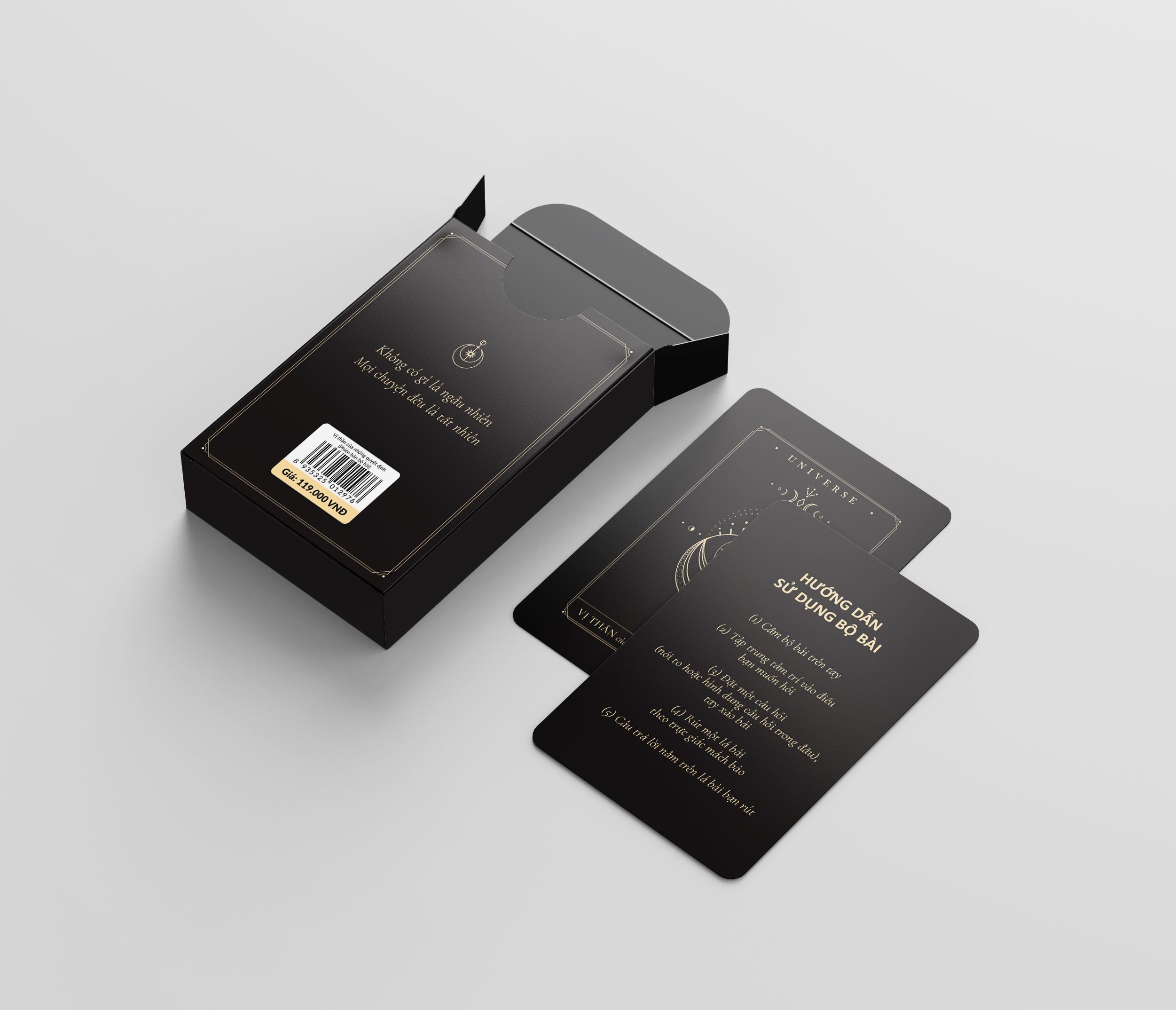 Cuốn sách đáp án Vị thần của những quyết định ra mắt năm 2022 đã nhanh chóng trở thành một hiện tượng với hàng trăm ngàn bản đã được bán ra. Thay vì các trang sách cố định vị trí, đây là phiên bản thẻ bài giúp bạn có thể tráo lá bài để lựa chọn đáp án chính xác hơn, kết nối với bộ bài hơn. Nếu bạn đang phân vân trước những lựa chọn, nếu bạn đang thiếu quyết đoán, nếu bạn không biết tiếp theo nên làm gì: hãy đặt một câu hỏi.