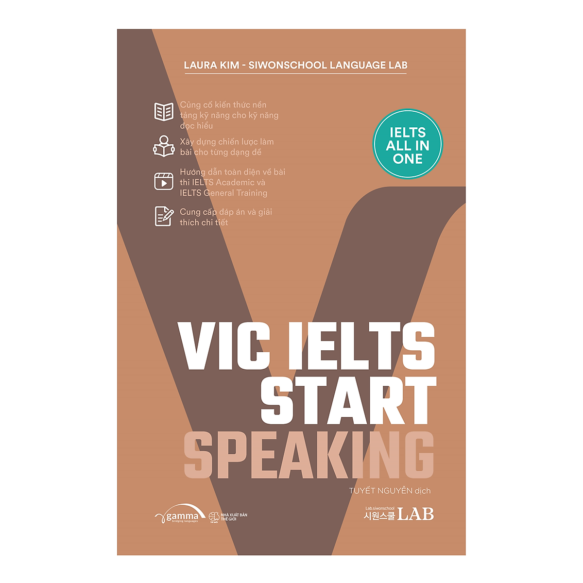 VIC IELTS SPEAKING START: Cuốn sách bổ sung các kiến thức cơ bản về phát âm và hiện tượng ngữ pháp thiết yếu. Phân tích các dạng câu hỏi thường xuất hiện nhất của từng phần trong bài thi Speaking IELTS; hướng dẫn các bước tư duy ý cùng câu trả lời mẫu, cung cấp từ vựng + cấu trúc kim cương theo chủ đề bài nói.