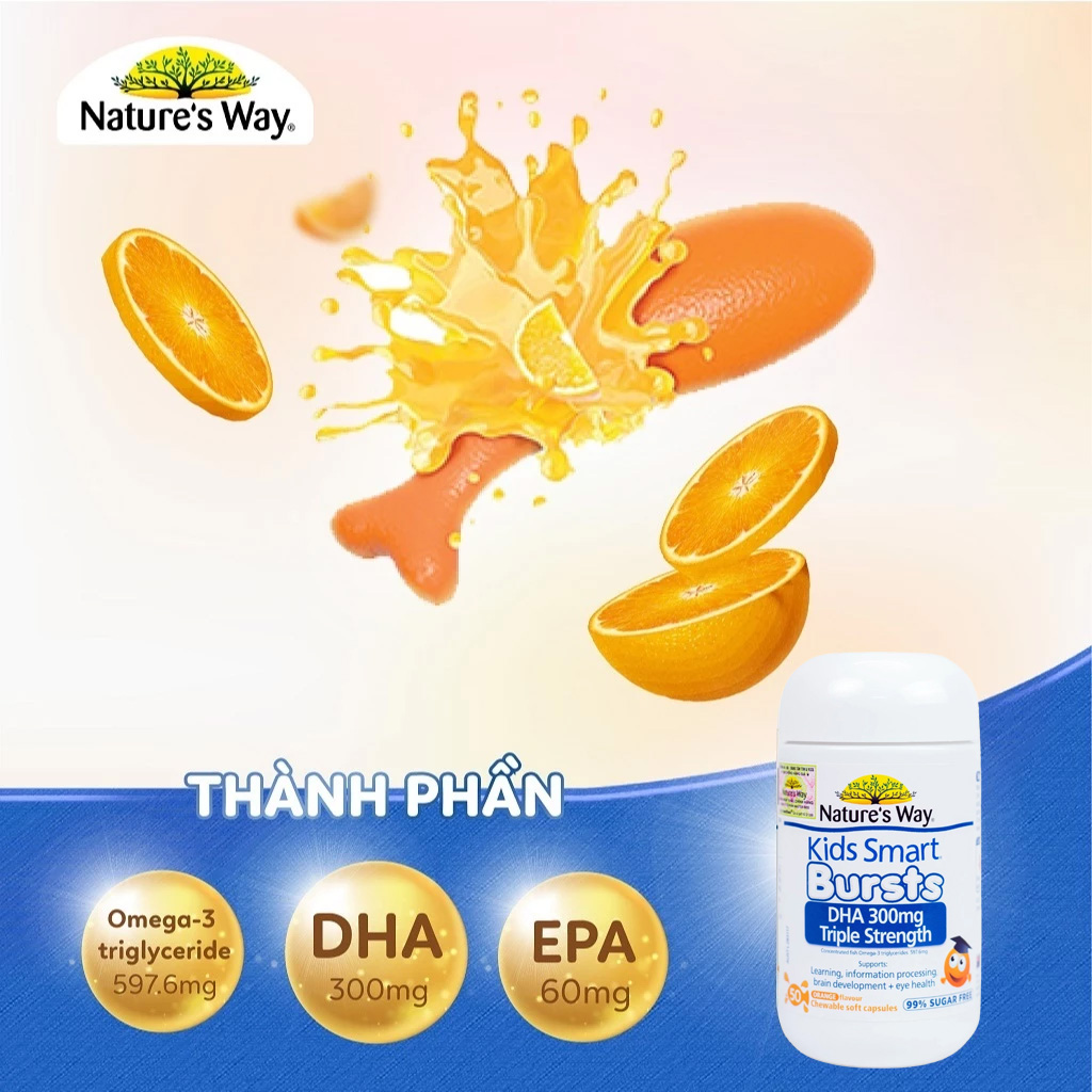 Nature’s Way Úc Kids Smart Bursts DHA 300mg Triple Strength 50 Viên - HÀNG ÚC 247