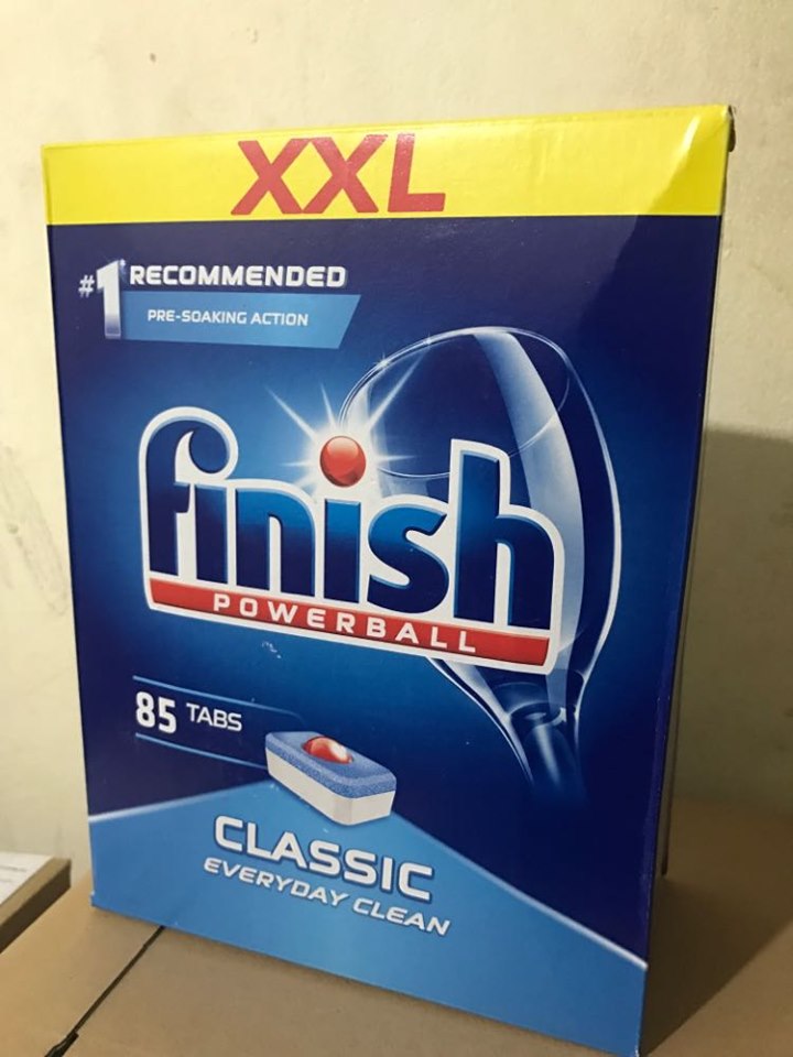 Hộp 85 viên rửa chén Finish Classic Dishwasher Tablets (là viên rửa chén cao cấp chuyên dùng cho máy rửa chén). Xuất xứ: Ba Lan (EU)
