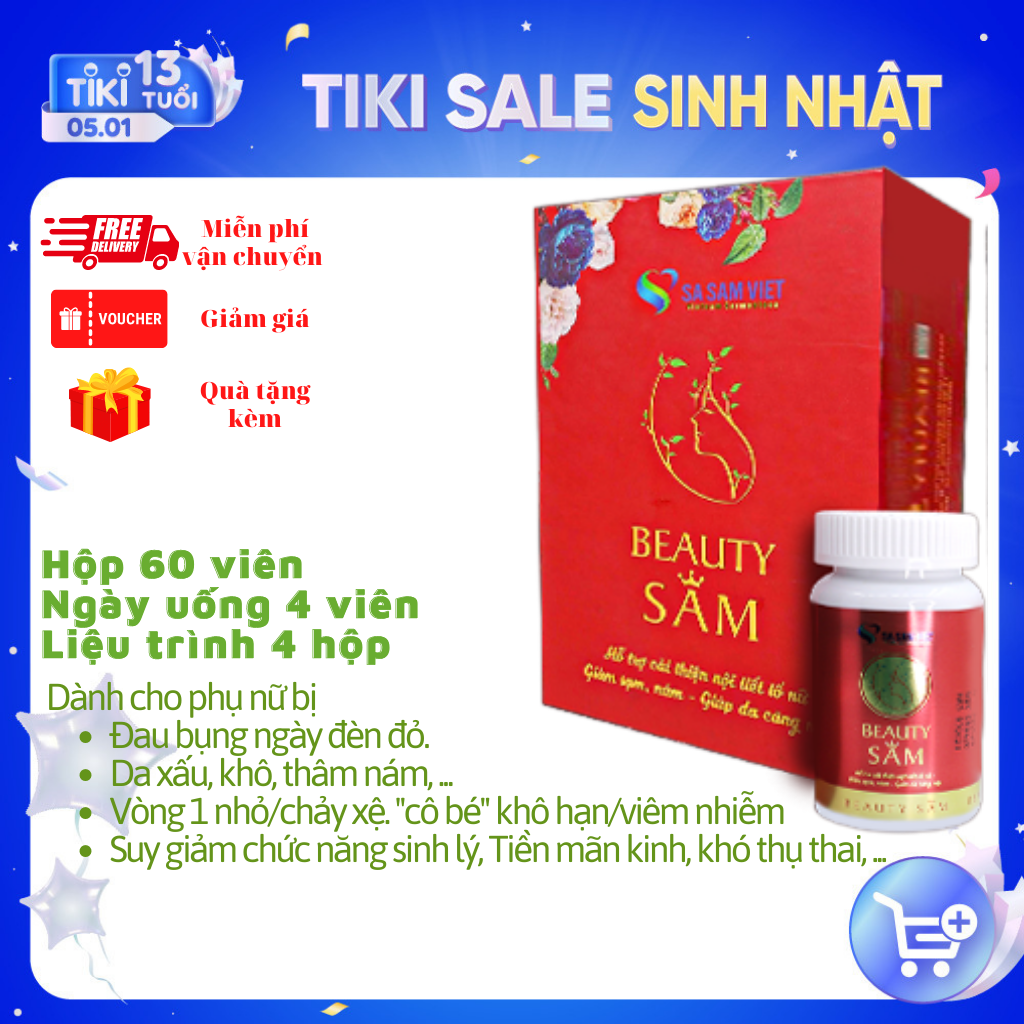 TÁC DỤNG của BEAUTYSAM: - Cải thiện, cân bằng hệ thống nội tiết, điều hòa kinh nguyệt, tăng cường hiệu quả sinh lý nữ: giảm chứng khô âm đạo, giúp tăng hưng phấn và đạt