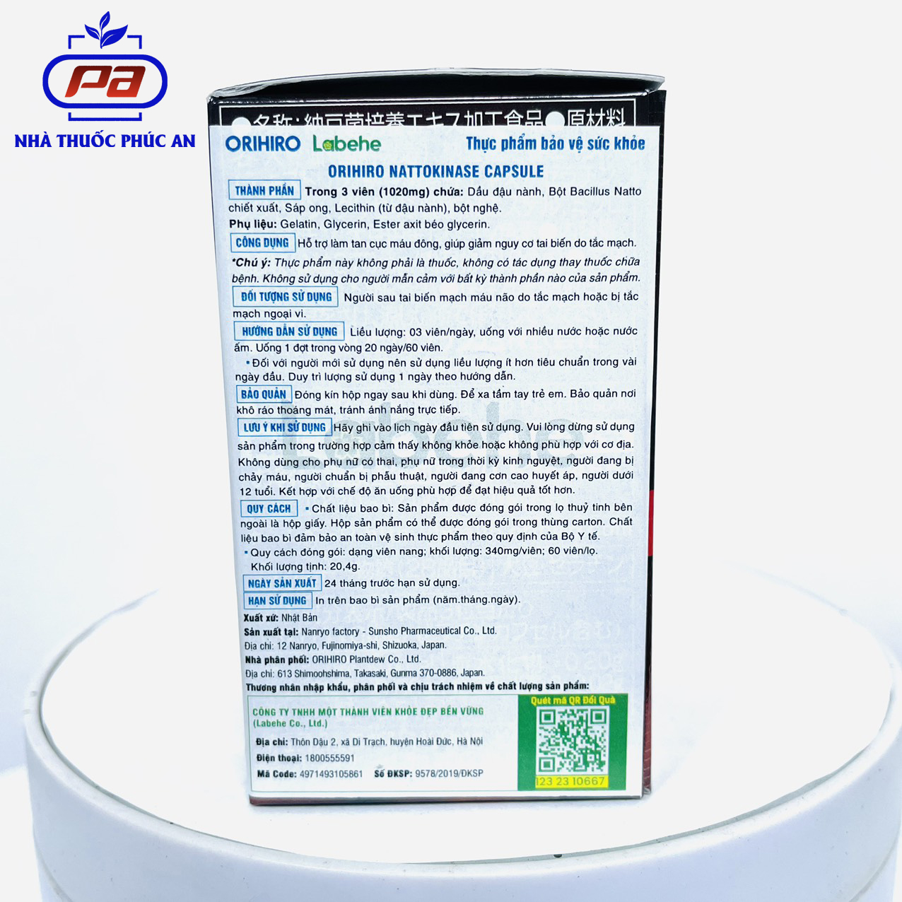 Viên Uống Ngăn Ngừa Đột Quỵ, Tai Biến Orihiro Natto Kinase 2000FU Nhật Bản 60 Viên NHÀ THUỐC PHÚC AN