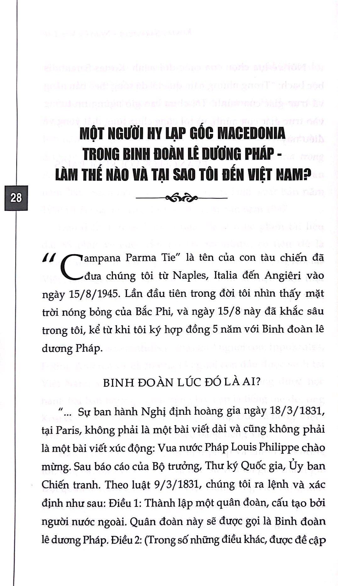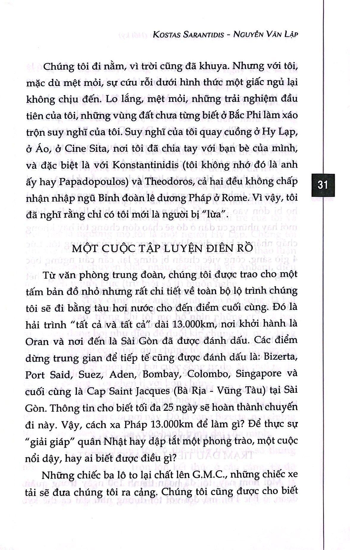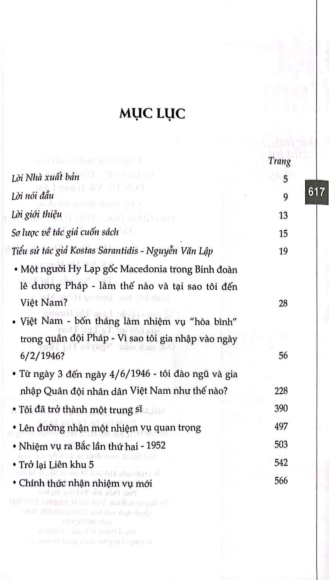 Nội dung cuốn sách được xây dựng dựa trên cơ sở tư liệu hồi ức, nhật ký của Anh hùng Lực lượng vũ trang nhân dân Việt Nam Kostas Sarantidis - Nguyễn Văn Lập. Là người có “một cuộc đời vô cùng thú vị và đầy phiêu lưu”, những câu chuyện, lời kể của Kostas Sarantidis đã được Hội những người Hy Lạp ở nước ngoài ghi chép, lưu giữ lại, bởi “những trải nghiệm này của ông, có lẽ là duy nhất trên thế giới”.