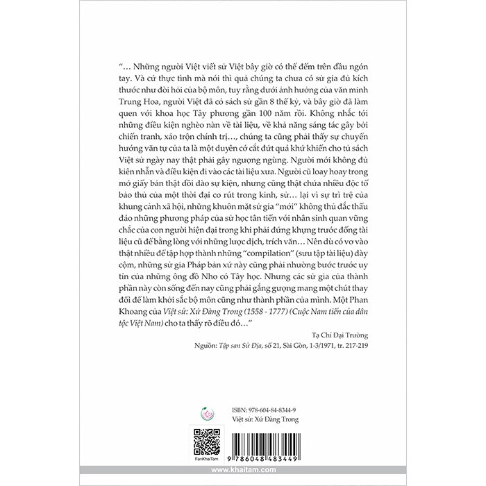 VIỆT SỬ: XỨ ĐÀNG TRONG 1558 - 1777 - Ngày dự kiến có hàng: 20/04/2025 Trong số những nhà sử học ở miền Nam trước năm 1975, phải nói là tên tuổi Phan Khoang thuộc