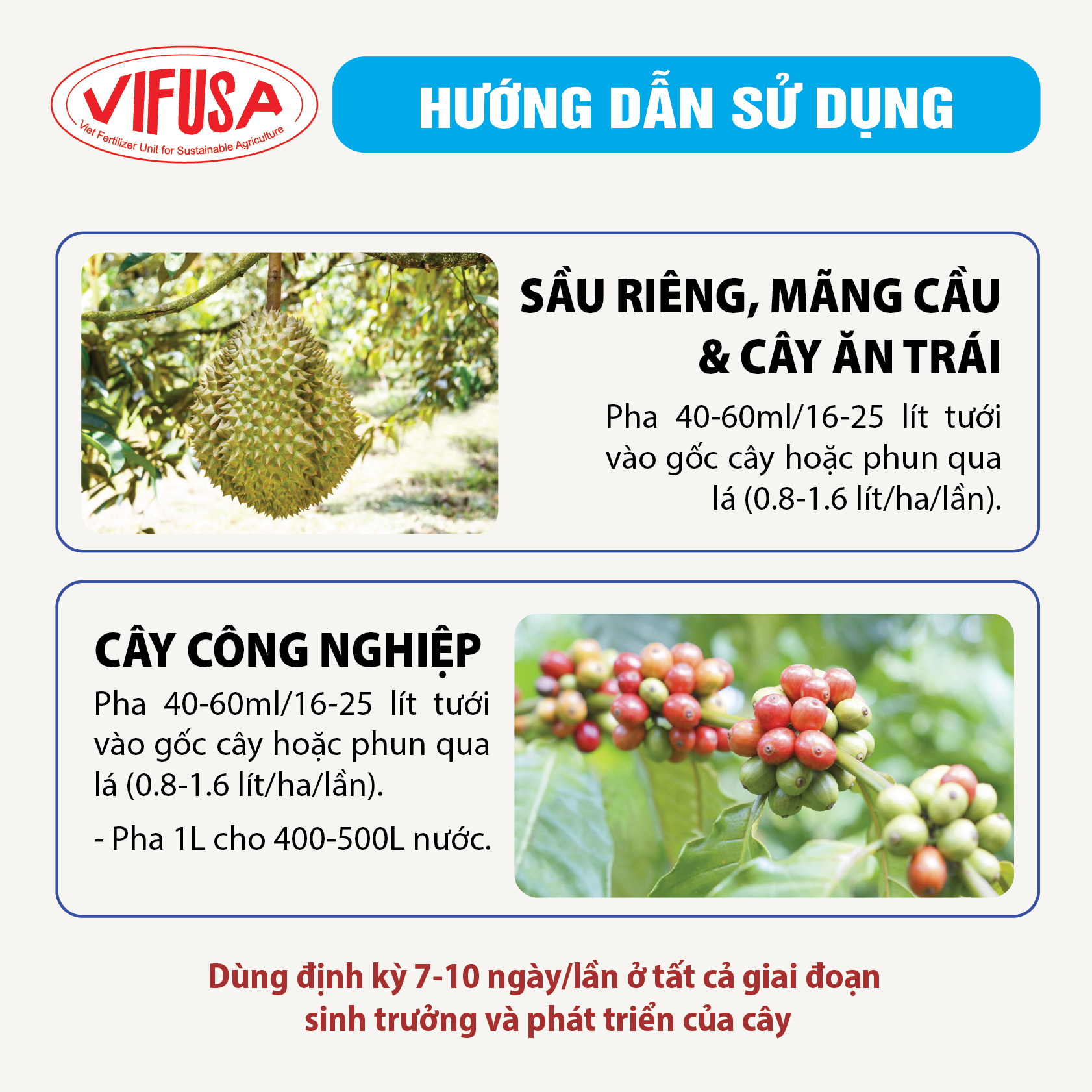 - Dưỡng trái non nhanh lớn, tròn đều, hạn chế hiện tượng méo trái, sượng trái. - Giúp cải thiện kích thước và hình dạng trái. - Giúp tăng cường sức khỏe cây trồng, cây