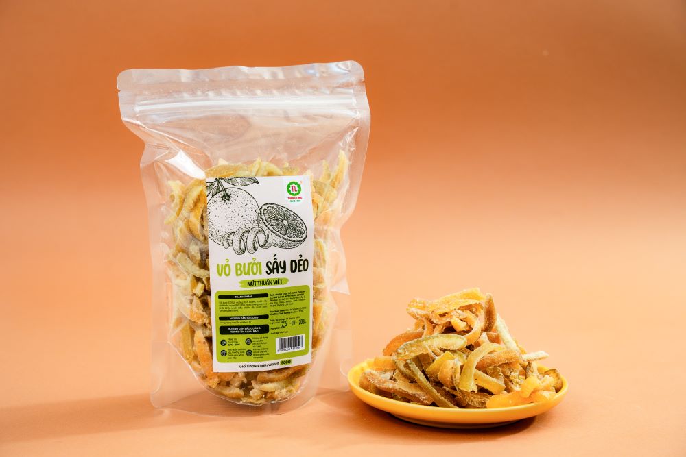 Mua tại TiktokVỎ BƯỞI SẤY DẺO Mứt Thuần Việt THÀNH PHẦN : Vỏ Bưởi (70%), đường tinh luyện, muối i-ốt, chất bảo quản (E202), chất chống oxy hóa (E223), chất điều chỉnh độ acid: Acid Tartaric (E334) SẢN XUẤT THEO: 02/HKDCSBMTL1/2021 THỜI HẠN SỬ DỤNG : 06 Tháng kể từ ngày sản xuất CHỈ TIÊU CHẤT LƯỢNG : ĐỘ ẨM ≤ 35% HƯỚNG DẪN SỬ DỤNG VÀ BẢO QUẢN: HƯỚNG DẪN BẢO QUẢN: BẢO QUẢN NƠI KHÔ RÁO, THOÁNG MÁT. TRÁNH ÁNH NẮNG TRỰC TIẾP. NHIỆT ĐỘ THÍCH HỢP: 220C-300C HƯỚNG DẪN SỬ DỤNG: DÙNG NGAY SAU KHI MỞ BAO BÌ. THÔNG TIN CẢNH BÁO: KHÔNG SỬ DỤNG SẢN PHẨM KHI ĐÃ HẾT HẠN SỬ DỤNG GIẤY CHỨNG NHẬN HACCP SỐ 21.4256 – HACCP/VC DO TRUNG TÂM GIÁM ĐỊNH VÀ CHỨNG NHẬN HỢP CHUẨN HỢP QUY VIETCERT ĐÁNH GIÁ CHỨNG NHẬN PHÙ HỢP TIÊU CHUẨN. BAO BÌ THAY ĐỔI THEO TỪNG LÔ HÀNG.