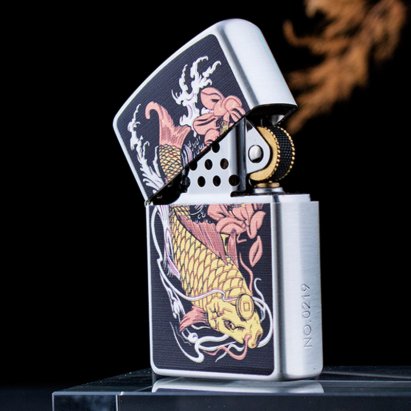 ✨Vỏ Hột Quẹt Bật Lửa Xăng Đá Zorro Z2-1117 Họa Tiết Cá Chép Quần Hội Ao Sen Cực Đẹp Đem Lại May Mắn