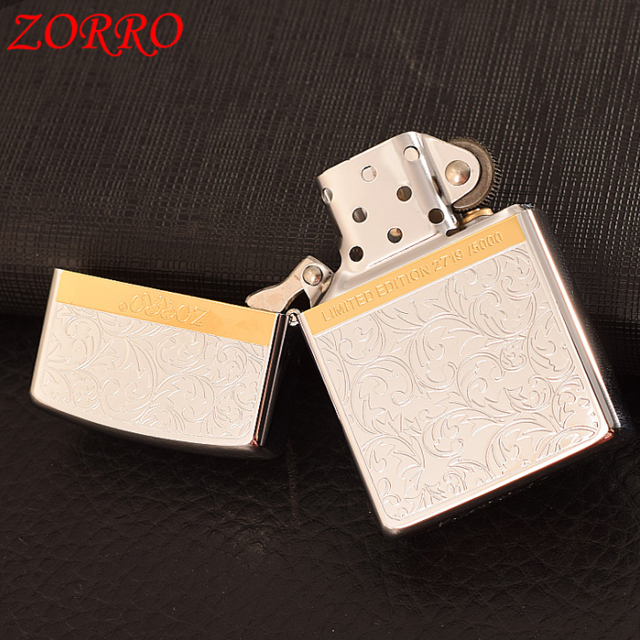 Bật lửa xăng đá hợp kim nguyên khối | Hộp quẹt hoa văn cổ điển Zorro Z92067 | Ambe