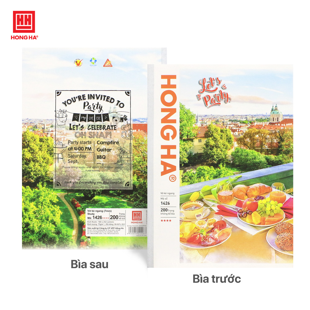 Vở kẻ ngang 200 trang Hồng Hà Let's Party 1426 được lấy cảm hứng từ bữa tiệc dã ngoại vui vẻ tạo ra bộ sản phẩm "Let's Party" nhiều màu sắc và phù hợp với xu hướng.