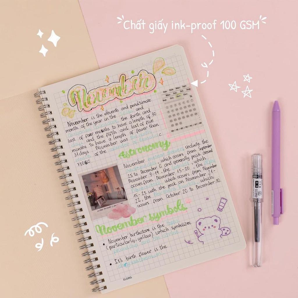 Sổ B5 120 trang 100GSM MS 508, MS 510 lò xo nhựa mềm 2 đầu KLONG - TUỆ MINH Bullet Journal