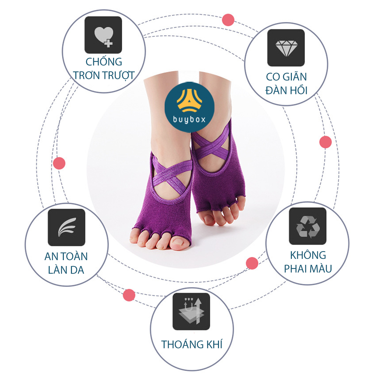 ✨Vớ yoga xỏ 5 ngón kết hợp quai chéo chữ X chống tuột thoải mái vận động, hạt silicon chống trơn trượt - Buybox - BBPK286