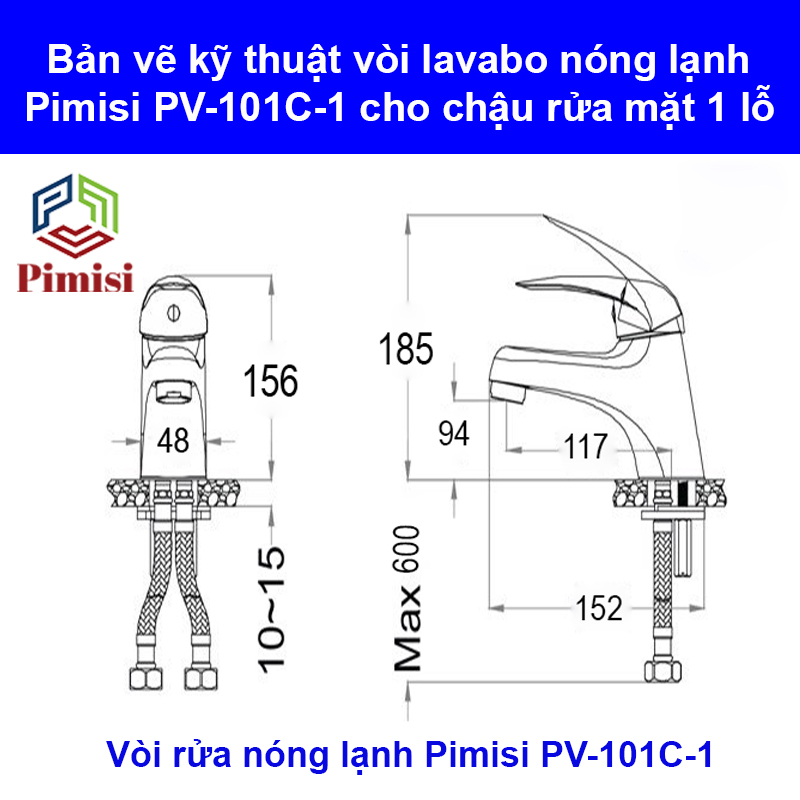 THÔNG SỐ KỸ THUẬT VÒI CHẬU LAVABO PIMISI PV-101C-1 NÓNG LẠNH: