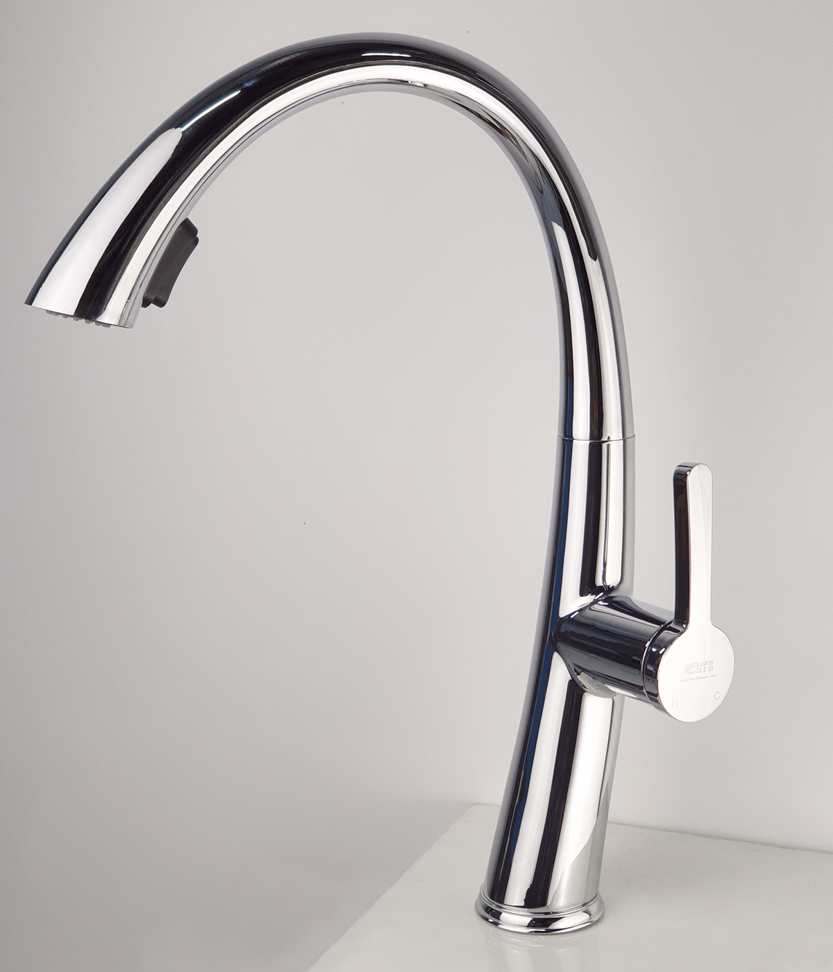 Thân vòi được thiết kế với hình trụ tròn, uyển chuyển nhưng mạnh mẽ. Đường kính thân lớn tới 45mm, giúp vòi cứng cáp và chắc chắn hơn.