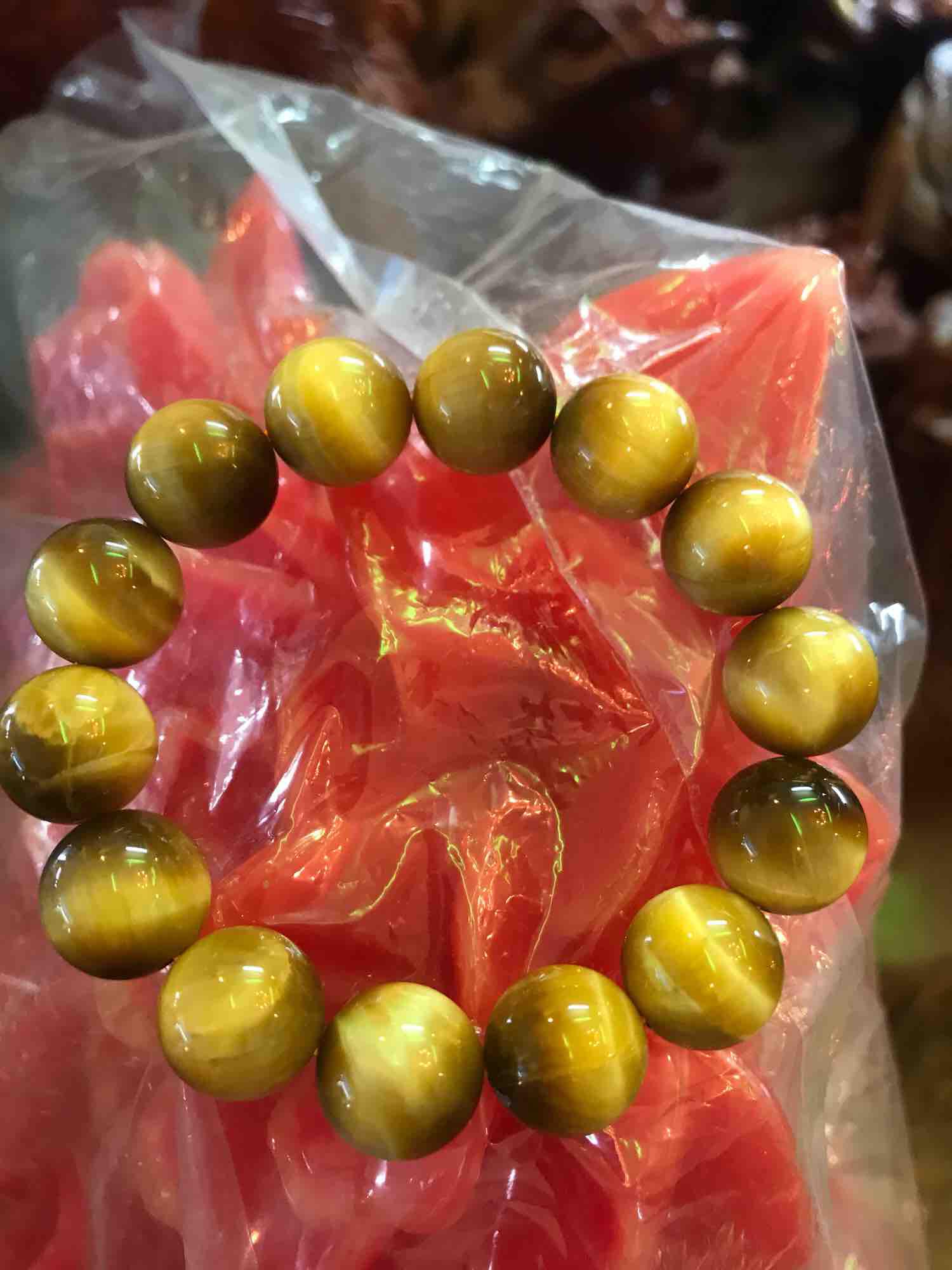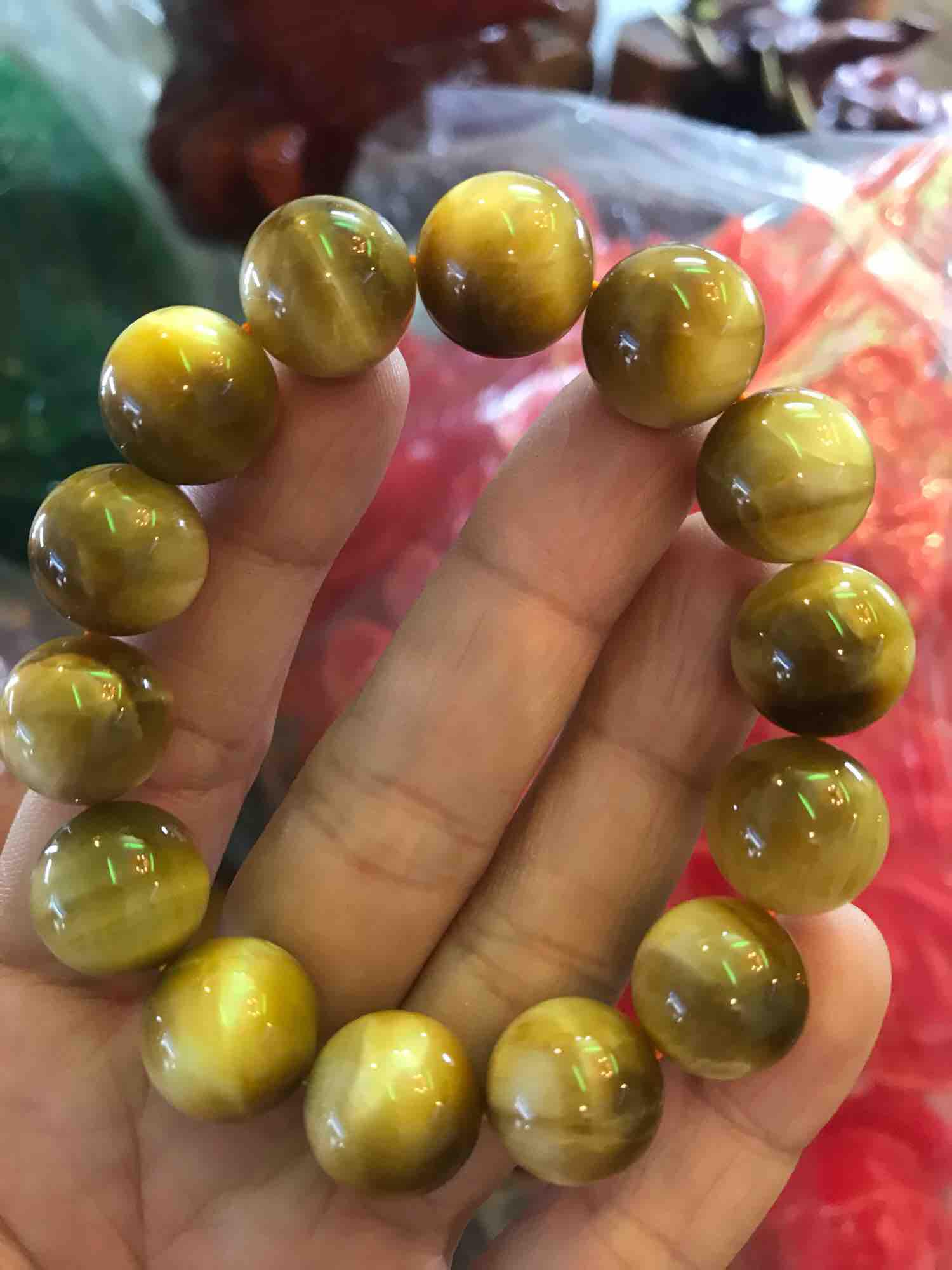 Vòng Nam Lu Thống Mới Vàng Nâu bóng đẹp đá mắt hổ tự nhiên vàng nâu hạt 14mm dài 19mm Shop Sunny Q8