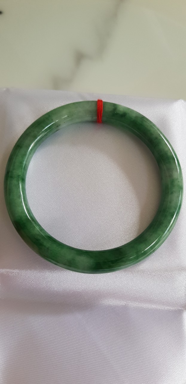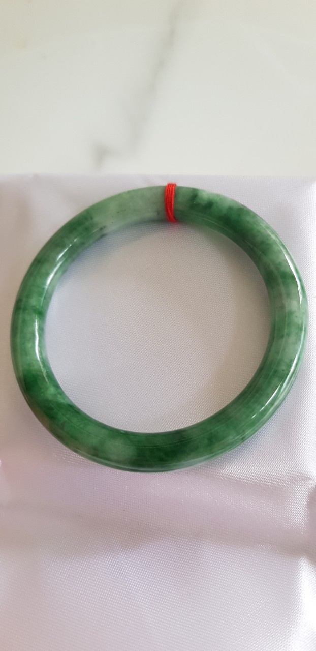 Vòng Cẩm Thạch tự nhiên Đậu Lý Sịn Sao 53mm x chột 8mm cao cấp sịn bóng đẹp màu xanh đậu lý đậm nhạt điểm trắng nhẹ đẹp bóng nữ 53kg - 62kg đeo rất đẹp sang tay món quà tặng Mẹ , tặng vợ người phụ nữ yêu quý may mắn ý nghĩa ạ