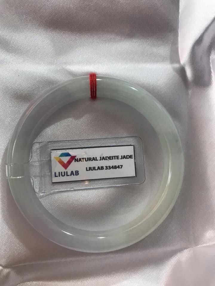 ✨VÒNG CẨM THẠCH TỰ NHIÊN TRẮNG TÍM SỊN 50mm x Dầy 8mm KÈM GIẤY KIỂM ĐỊNH LIULAB 334847 MÀU TRẮNG LAM TÍM NHẸ 1 BÊN ĐIỂM XANH NHẸ ĐẸP LẮM NỮ 50Kg - 55kg ĐEO ĐẸP Ạ