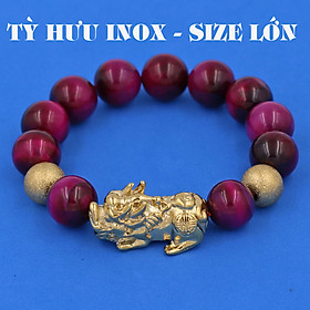 Kính thước hạt: 14 ly : 11 hạt charm tỳ hưu inox size lớn, 2 bi inox vàng, phù hợp ngươi đeo có cân nặng trên 64 kg