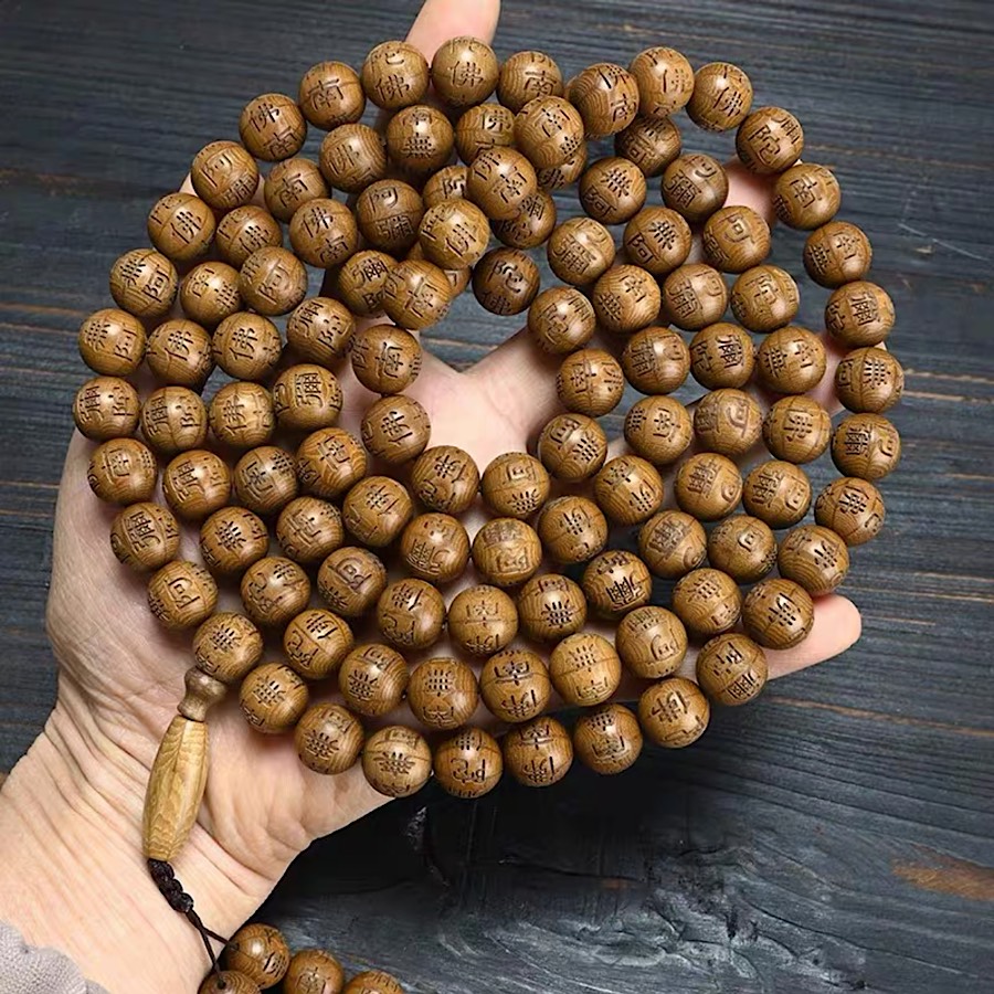 ✨VÒNG CHUỖI GỖ LỤC ĐẠO MỘC LIÊN HOA KHẮC A DI ĐÀ PHẬT 108 hạt 10ly TẶNG HỘP ĐỰNG