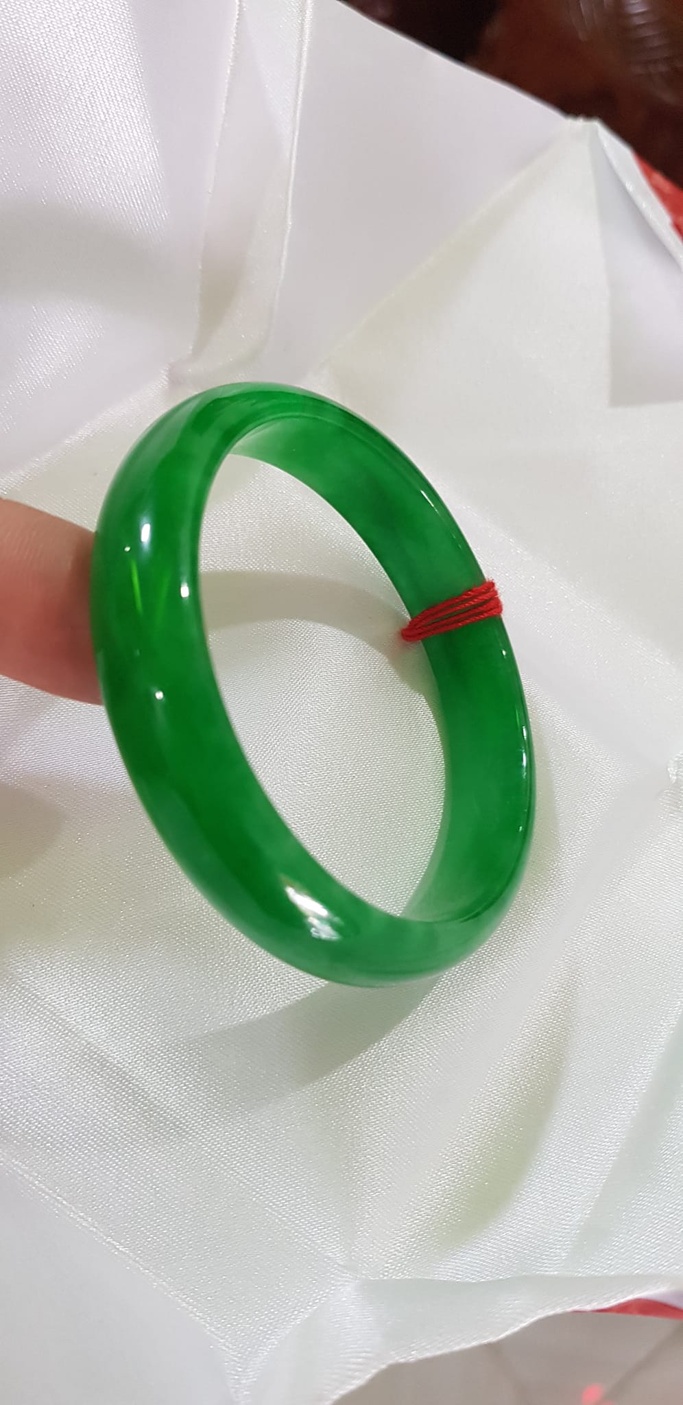 Vòng cẩm thạch Đ Lý 52mm x dầy 7,8mm màu xanh lá tươi hợp Nữ mệnh Mộc mệnh Hỏa 52kg - 56kg đeo ạ