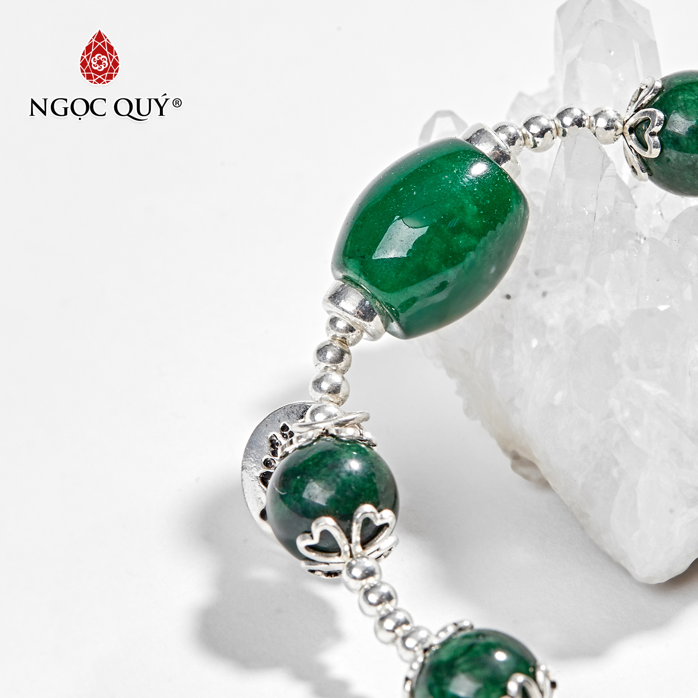 VÒNG TAY ĐÁ THẠCH ANH TÓC XANH PHỐI DREAM CATHCER BẠC: Được sự chúc phúc từ các tinh linh, Thạch Anh Tóc Xanh như mang ta quay về với những khu rừng thơ mộng, sự