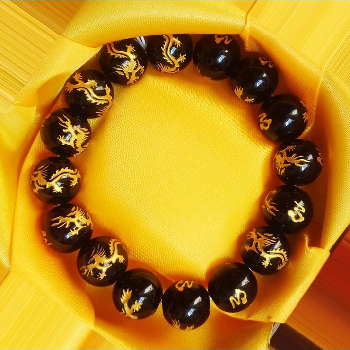 Vòng đeo tay đá đen huyền thạch chạm rồng là biểu tượng cho sự may mắn và sự thành công cho gia chủ.