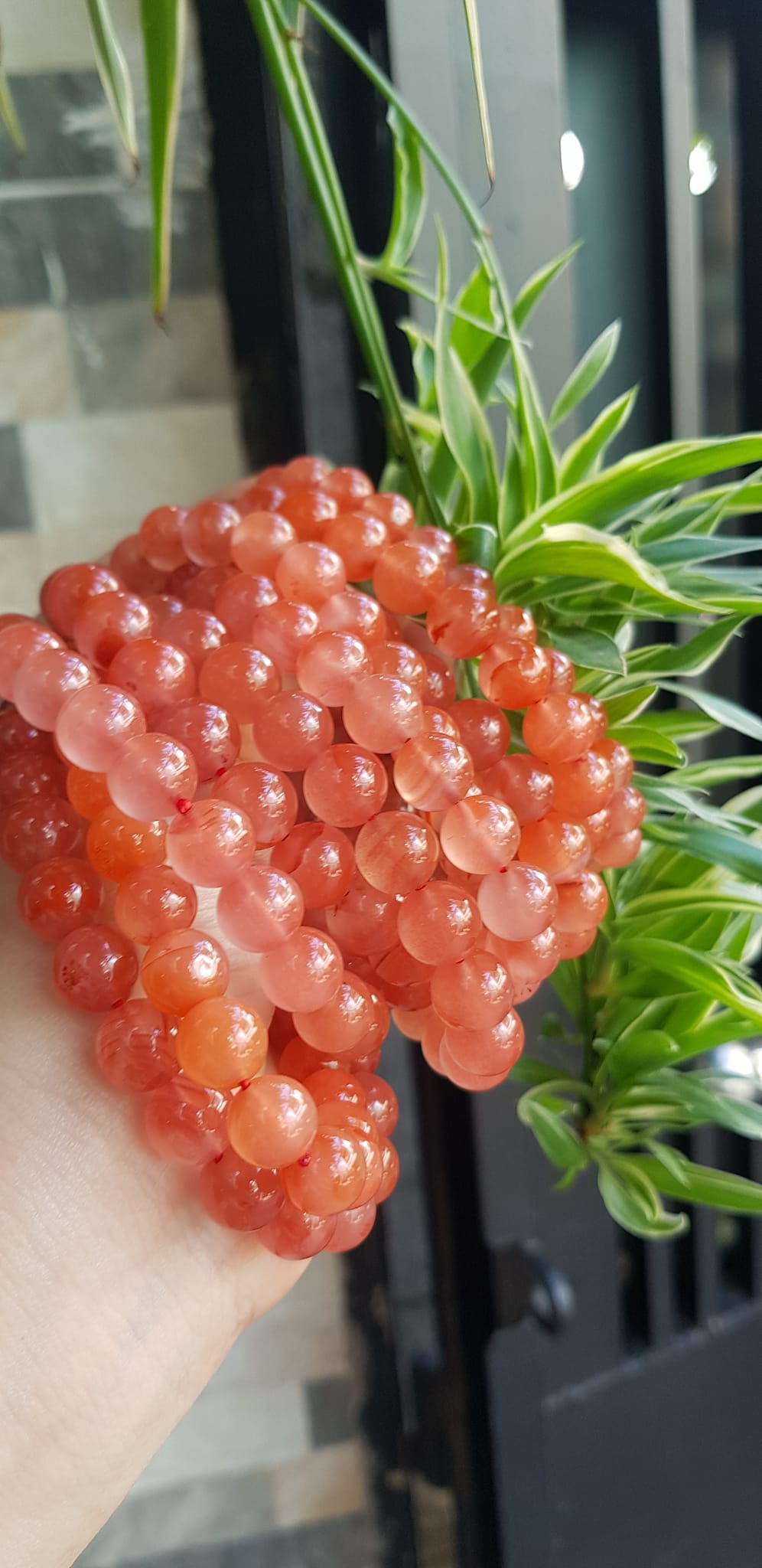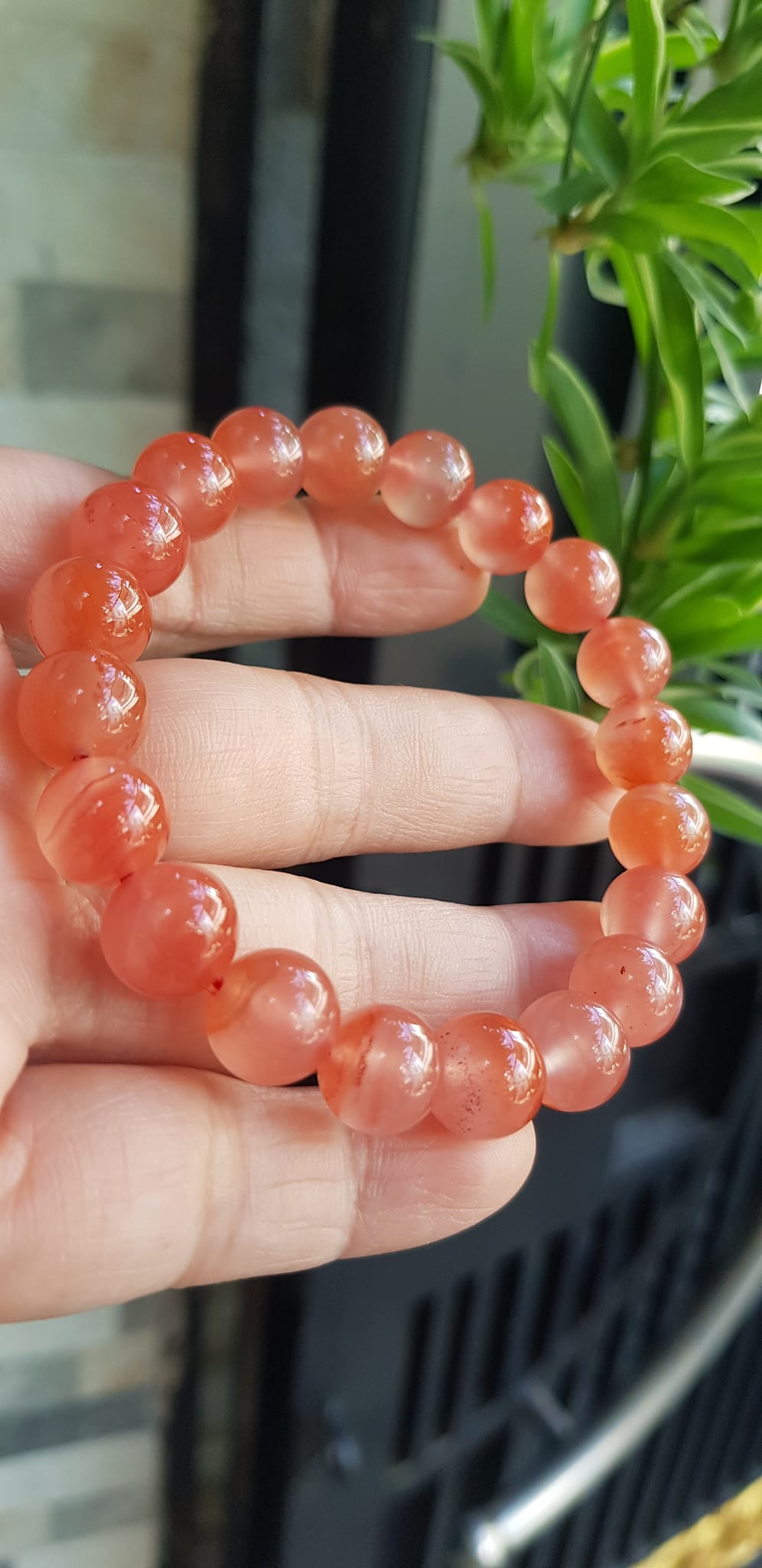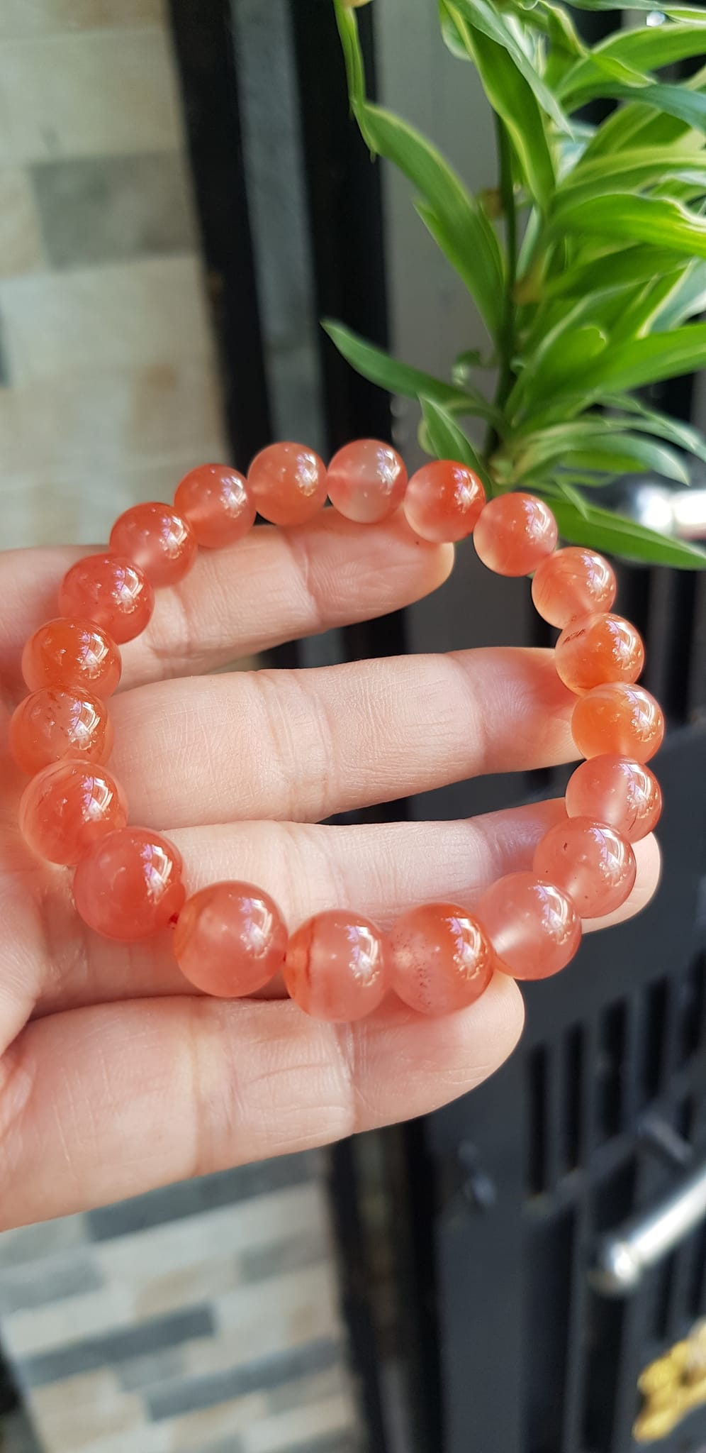Vòng đeo tay nữ chuỗi mới đá mã não hồng cam bóng mượt đẹp Size vòng hạt 10mm Nam nữ mệnh hỏa mệnh thổ đeo ạ