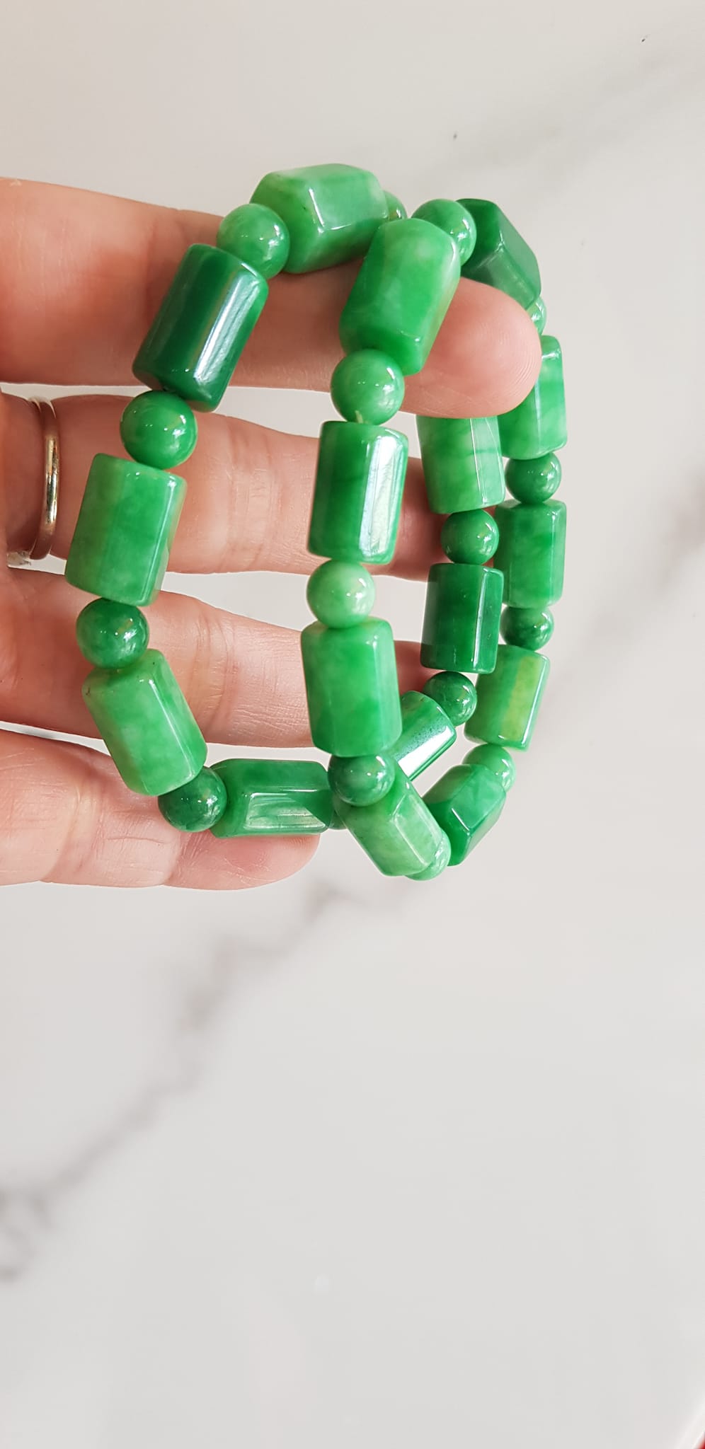 ✨Vòng đeo tay nữ đá cẩm thạch xanh mix kiểu hạt ống vuông dài tròn size 10mm Nữ mệnh mộc hỏa thủy đeo xinh may mắn ạ