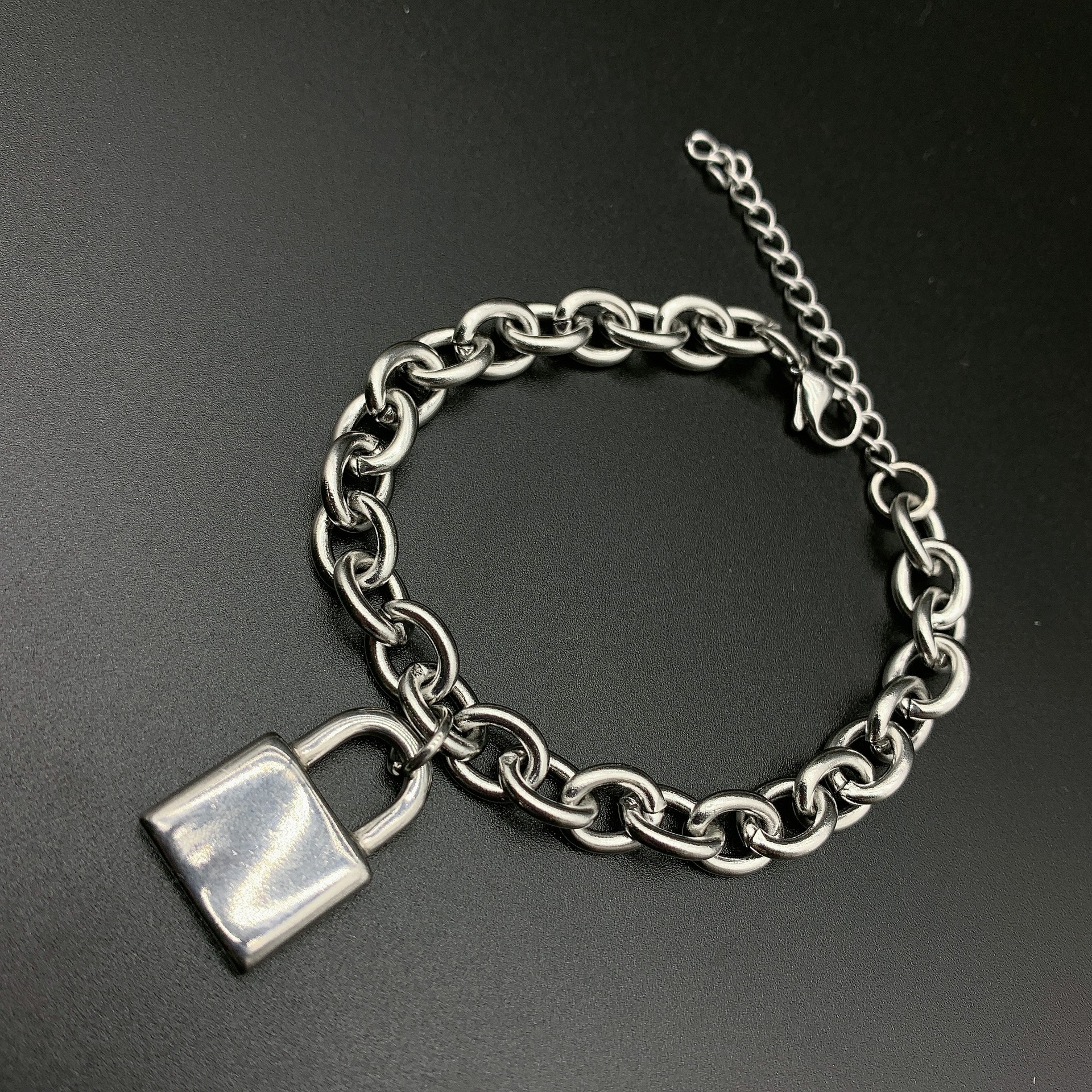 ✨Vòng đeo tay xích tròn titanium không gỉ lắc khoá cá tính