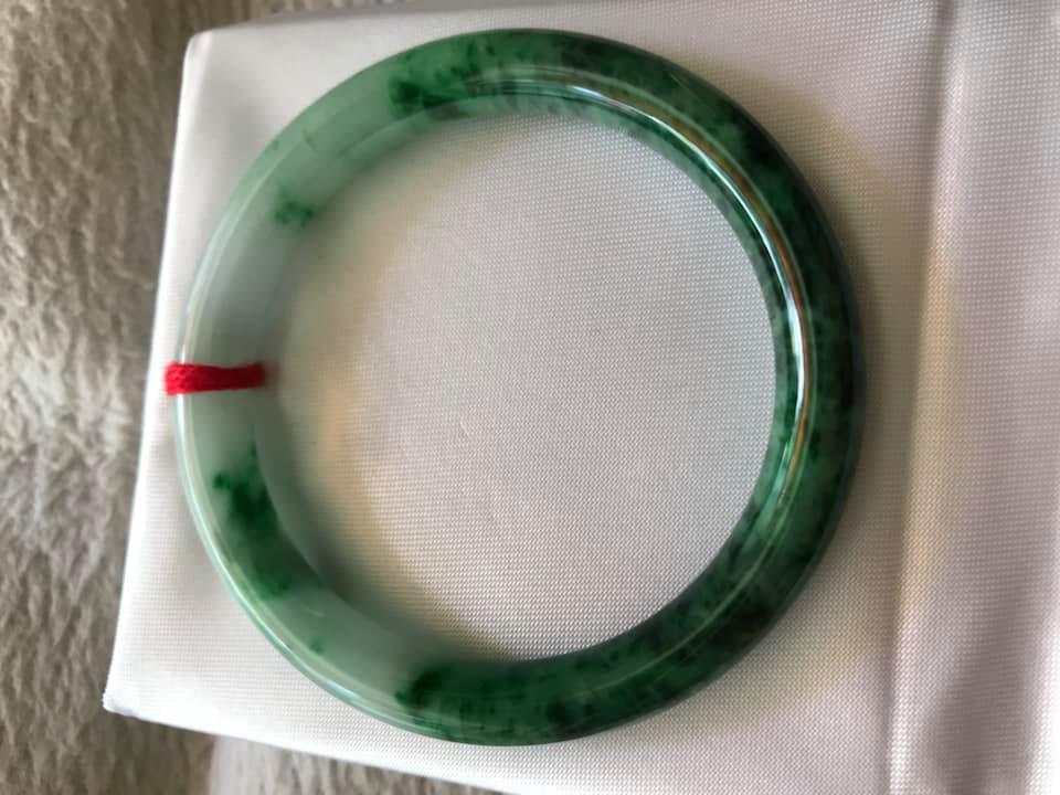 VÒNG BẢN HẸ A SIZE 49 ĐÁ CẨM THẠCH TỰ NHIÊN MÀU XANH LÁ ĐẬM Ở GIỮA LAM TRẮNG ĐỀU VÒNG NỮ 42KG ĐẾN 52KG ĐEO Ạ Sản phẩm này là tài sản cá