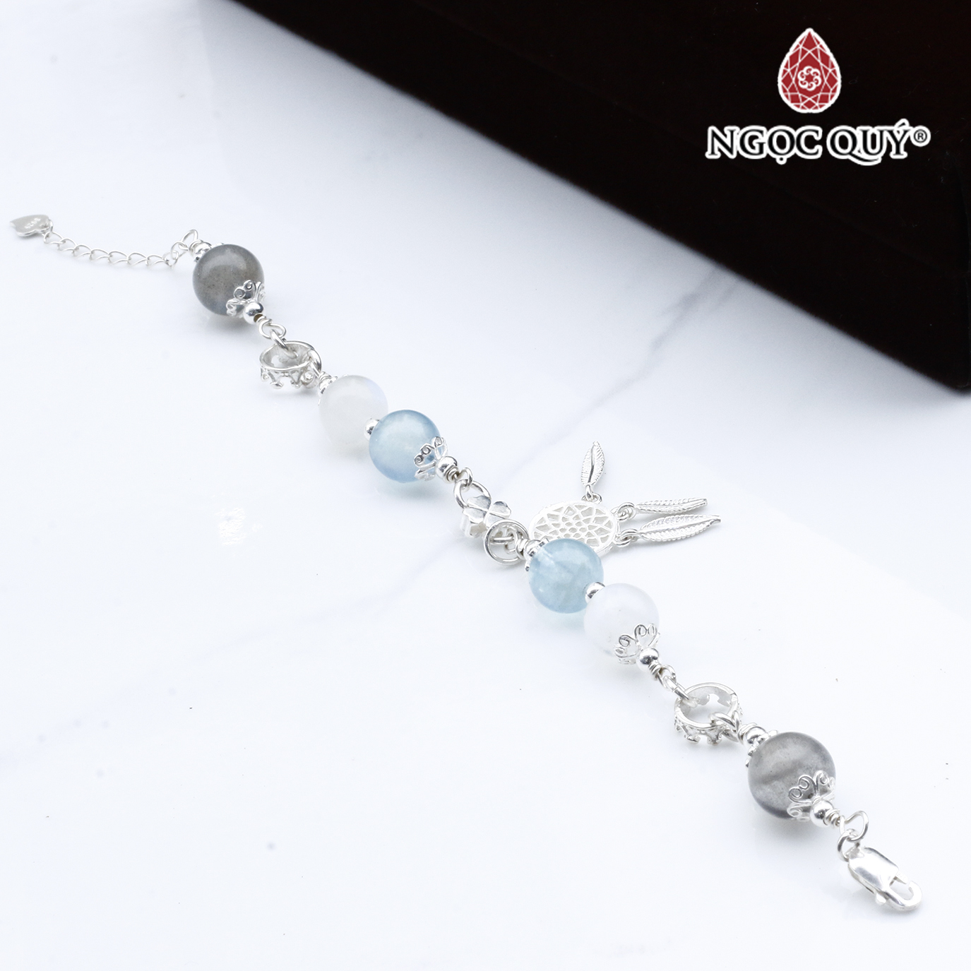 ✨Vòng lắc bạc phối charm aquamarine và thạch anh trắng mệnh thủy, mộc - Ngọc Quý Gemstones