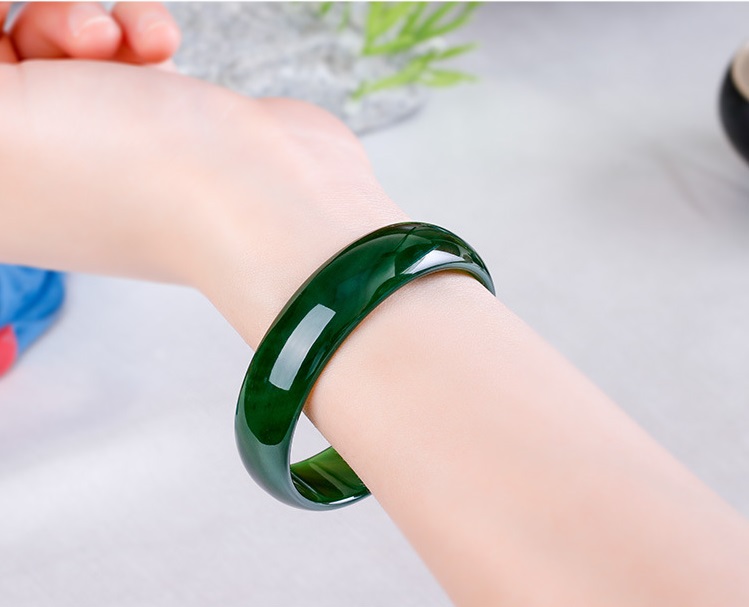 Vòng tay Nữ Đá Cẩm Thạch mới TR Lý 57 mm x cọng 7,5mm Màu Xanh lý tươi trắng 2 bên đều vòng đẹp Nữ 55kg - 64kg đeo đẹp món quà tặng chính mình