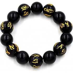 Màu đen , khắc và mạ vàng Phật chú trên hạt chuỗi.