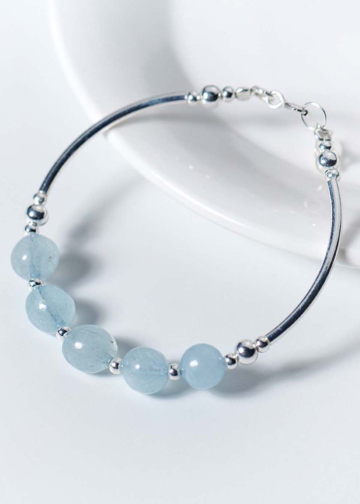 Lắc tay bạc đá aquamarine - Hợp mệnh thủy, mệnh mộc | Ngọc Quý Gemstones |