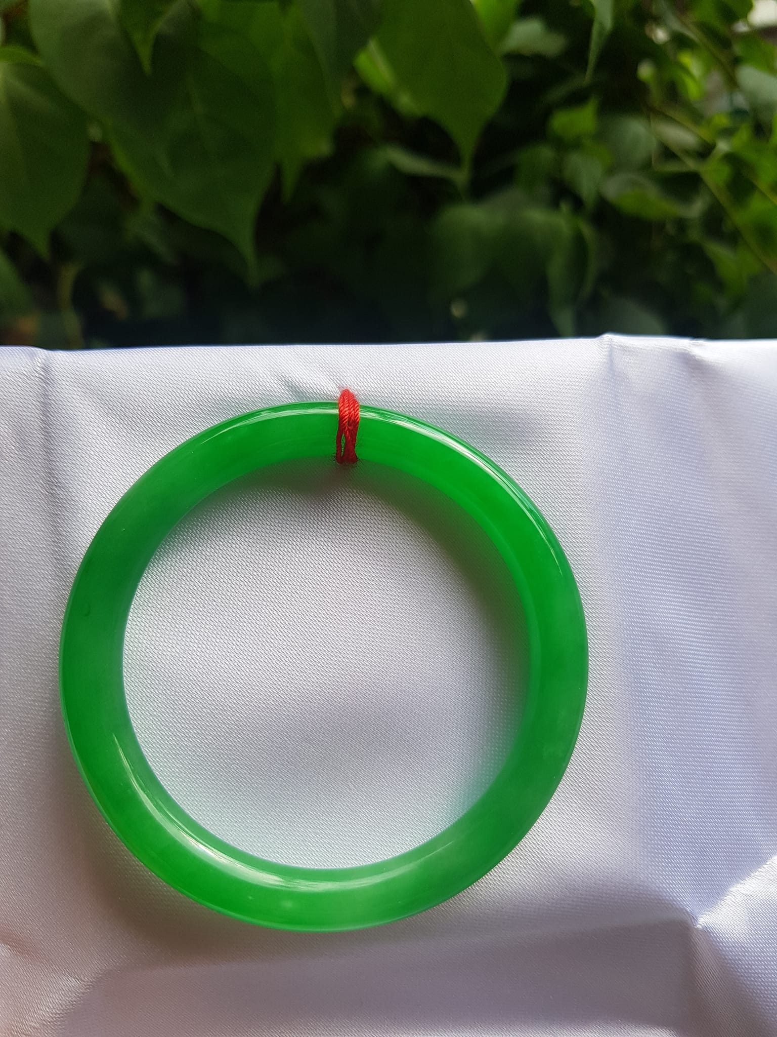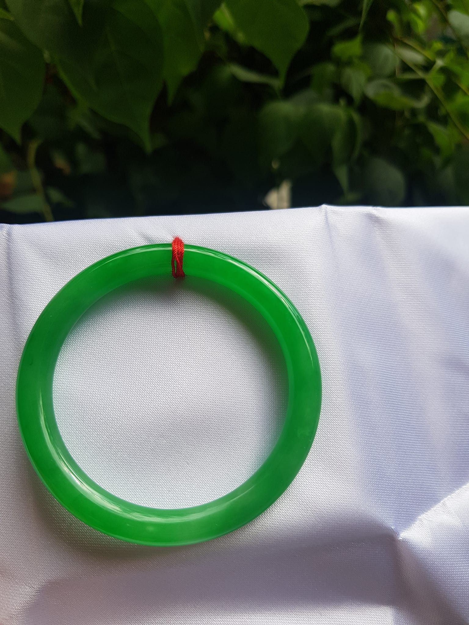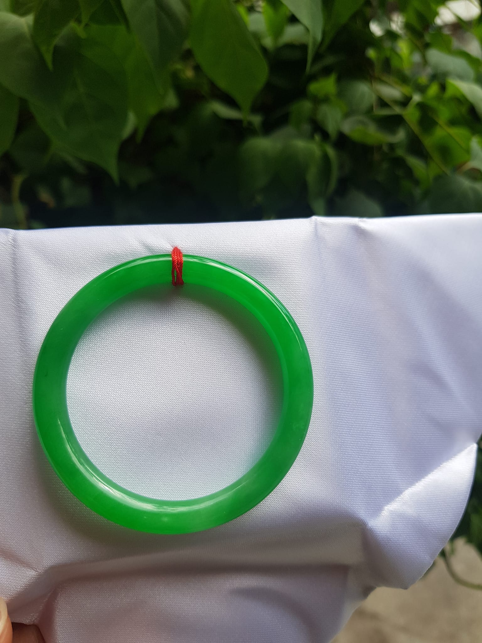 Vòng Tay Nữ Mới Cẩm Thạch Lý K49 A size 49mm dầy 8mm Xanh lá đậm bóng 45kg -49kg đeo ạ Sunny Quận 8