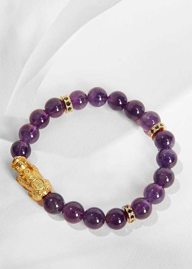 Vòng tay đá thạch anh tím charm tỳ hưu bọc vàng 24k Ngọc Quý GemstonesVòng tay đá thạch anh tím charm tỳ hưu bọc vàng 24k Ngọc Quý GemstonesVòng tay đá thạch anh tím charm tỳ hưu bọc vàng 24k Ngọc Quý Gemstones