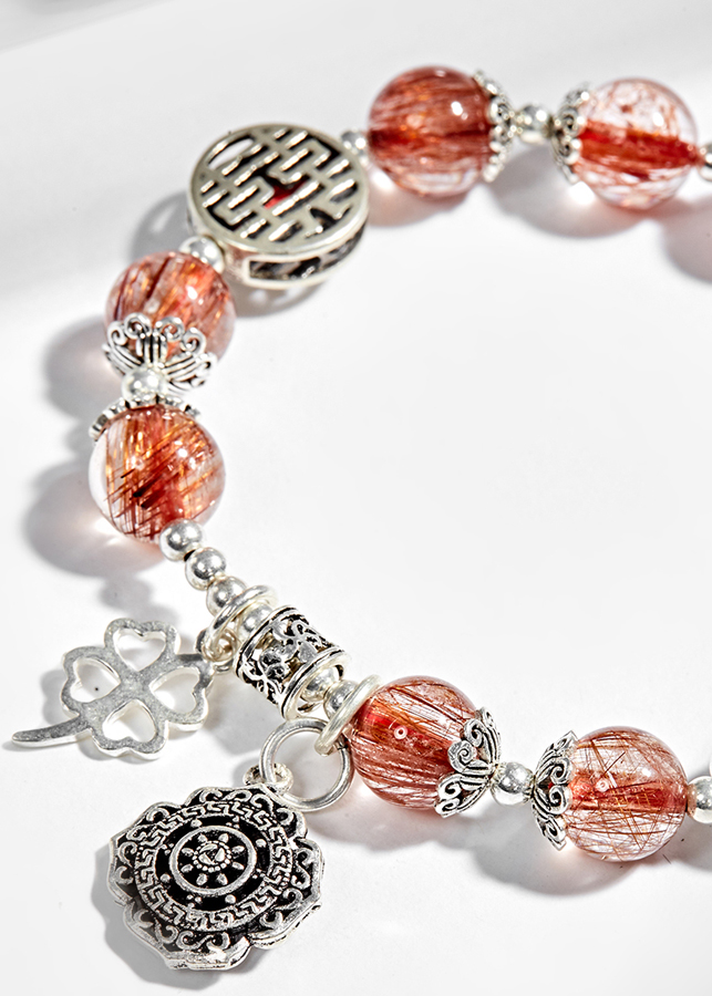 - Vòng Tay Đá Thạch Anh Tóc Đỏ Đồng Trục Phối Charm Bạc (8mm) sẽ giúp những bạn nữ có thể chất yếu và khí huyết không ổn định bổ sung năng lượng cho 3 vùng dưới (mông, rốn, thái dương) giúp cho khí huyết lưu thông điều hòa hơn.